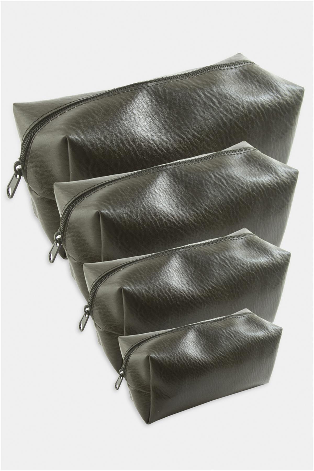 Makyaj Çantası; Ürün malzemesi suni deri ve fermuarlıdır. Fiyat 1 pakette 4 adet çanta için geçerlidir. Çantalar iç içe geçebilmektedir.