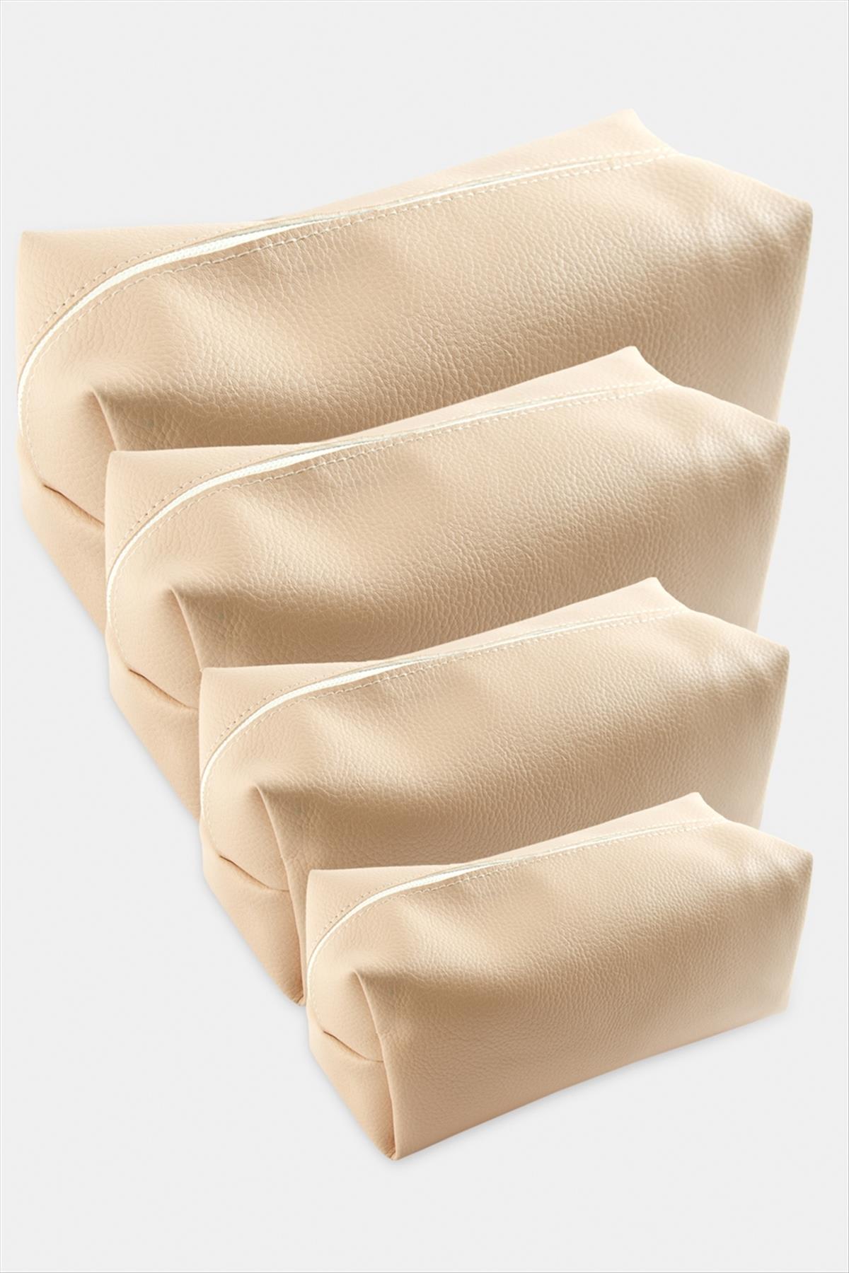 Makyaj Çantası; Ürün malzemesi suni deri ve fermuarlıdır. Fiyat 1 pakette 4 adet çanta için geçerlidir. Çantalar iç içe geçebilmektedir.