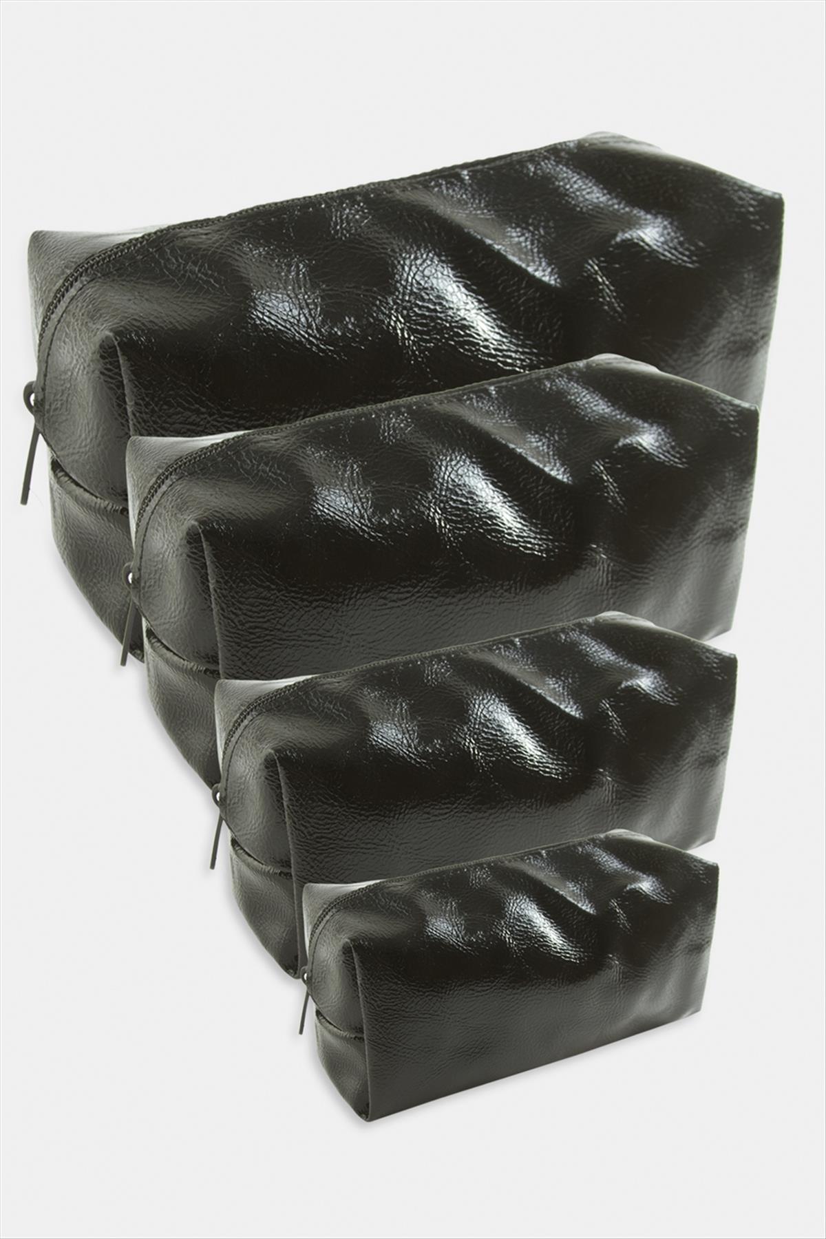 Makyaj Çantası; Ürün malzemesi suni deri ve fermuarlıdır. Fiyat 1 pakette 4 adet çanta için geçerlidir. Çantalar iç içe geçebilmektedir.