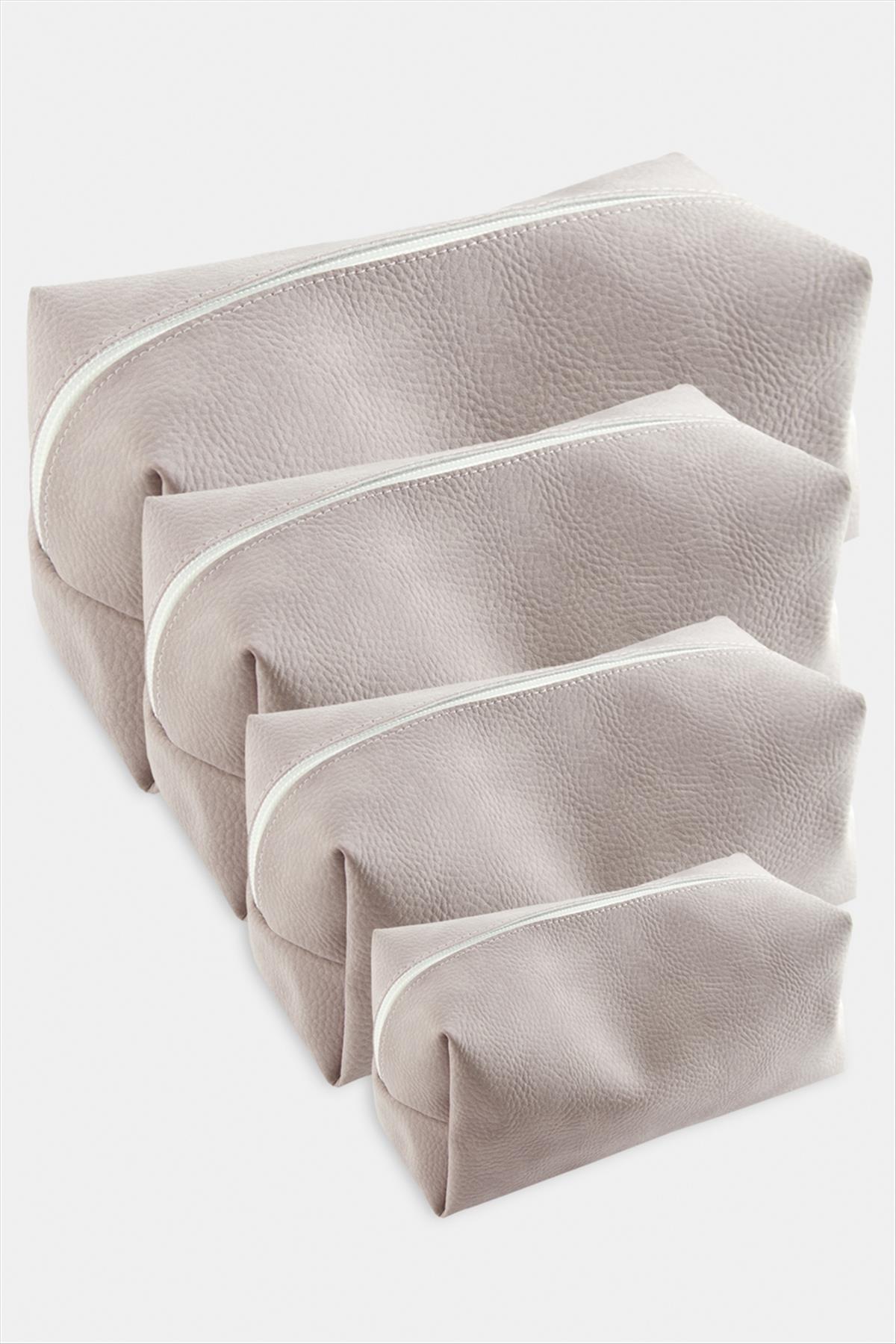 Makyaj Çantası; Ürün malzemesi suni deri ve fermuarlıdır. Fiyat 1 pakette 4 adet çanta için geçerlidir. Çantalar iç içe geçebilmektedir.