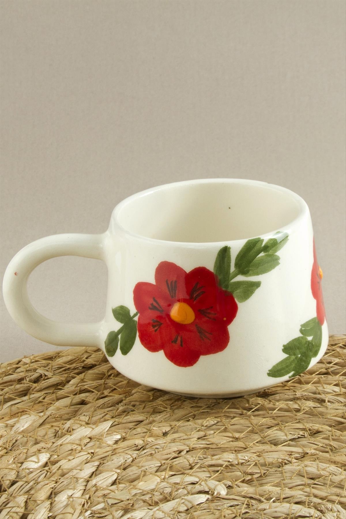 Çiçek Desenli Seramik Kupa