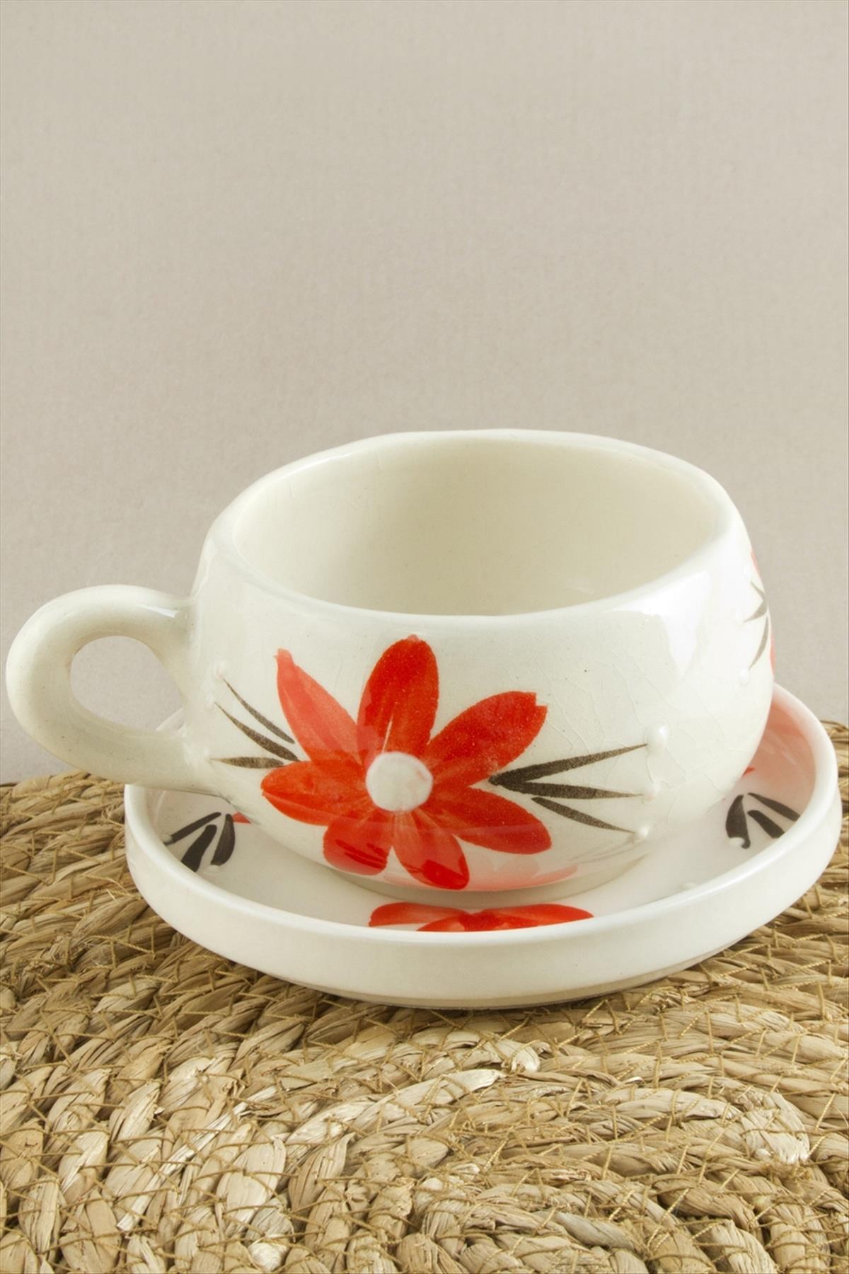 Çiçek Desenli Seramik Tabaklı Kupa