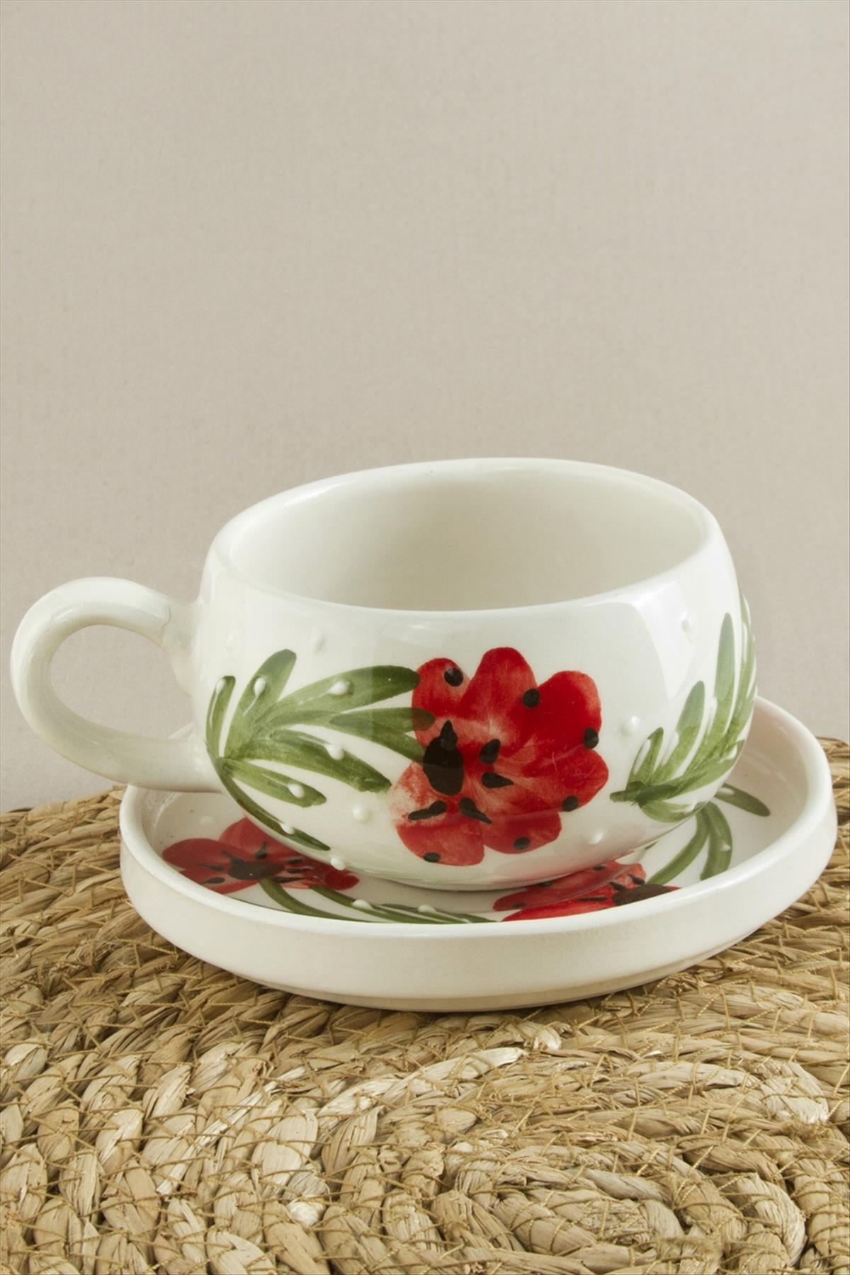 Tabaklı Kupa; Ürün malzemesi seramiktir. Üzerindeki desenler elle çizilip fırınlanmıştır. İçecekleri uzun sür sıcak tutar ve darbelere karşı dayanıklıdır. Ürün kutu içinde tabak ve kupasıyla beraber gönderilecektir. Ürün boyu kupa çapı 8,5 cm ve tabak boyu 12 cmdir.