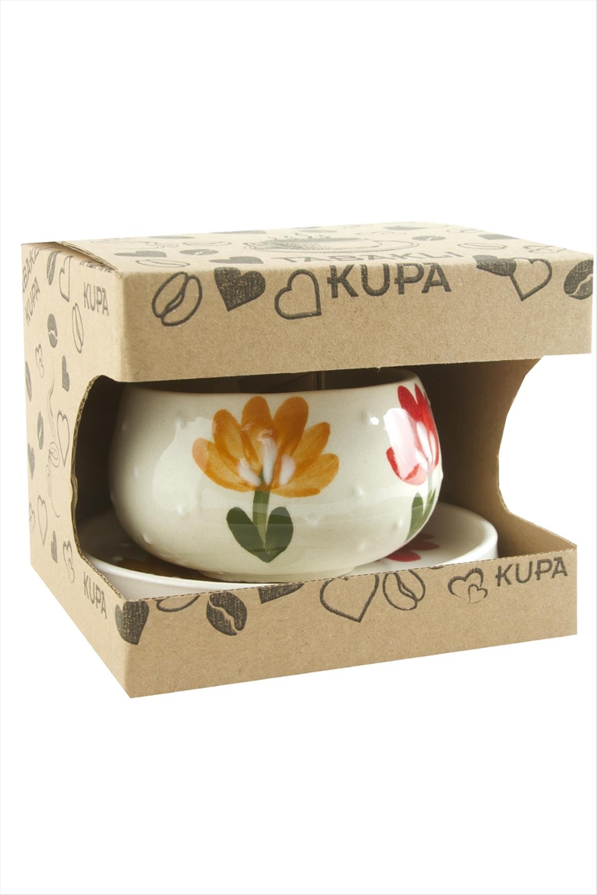 Tabaklı Kupa; Ürün malzemesi seramiktir. Üzerindeki desenler elle çizilip fırınlanmıştır. İçecekleri uzun sür sıcak tutar ve darbelere karşı dayanıklıdır. Ürün kutu içinde tabak ve kupasıyla beraber gönderilecektir. Ürün boyu kupa çapı 8,5 cm ve tabak boyu 12 cmdir.