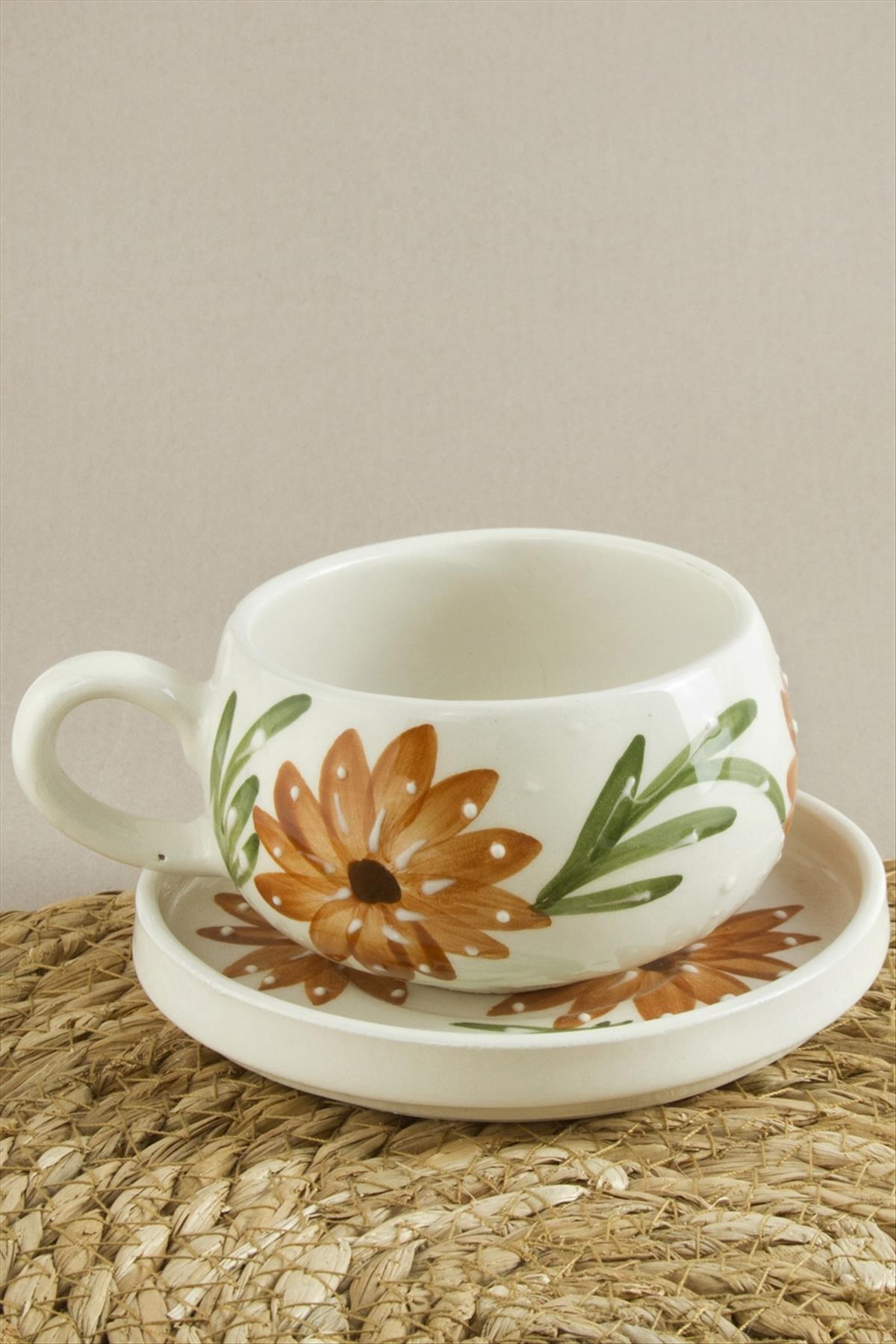 Tabaklı Kupa; Ürün malzemesi seramiktir. Üzerindeki desenler elle çizilip fırınlanmıştır. İçecekleri uzun sür sıcak tutar ve darbelere karşı dayanıklıdır. Ürün kutu içinde tabak ve kupasıyla beraber gönderilecektir. Ürün boyu kupa çapı 8,5 cm ve tabak boyu 12 cmdir.