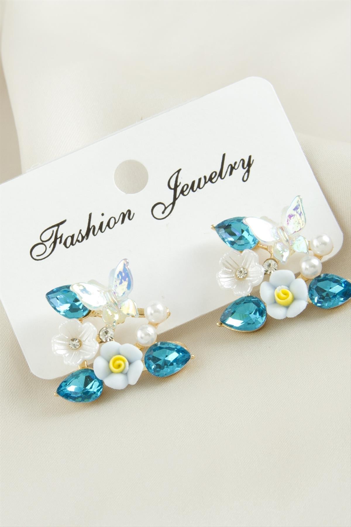 Küpe; Ürün malzemesi metal ve taşlıdır. Ürün boyu 2 cmdir. 1 sınıf kaliteli malzemeden üretilmiştir. Kartlıdır.