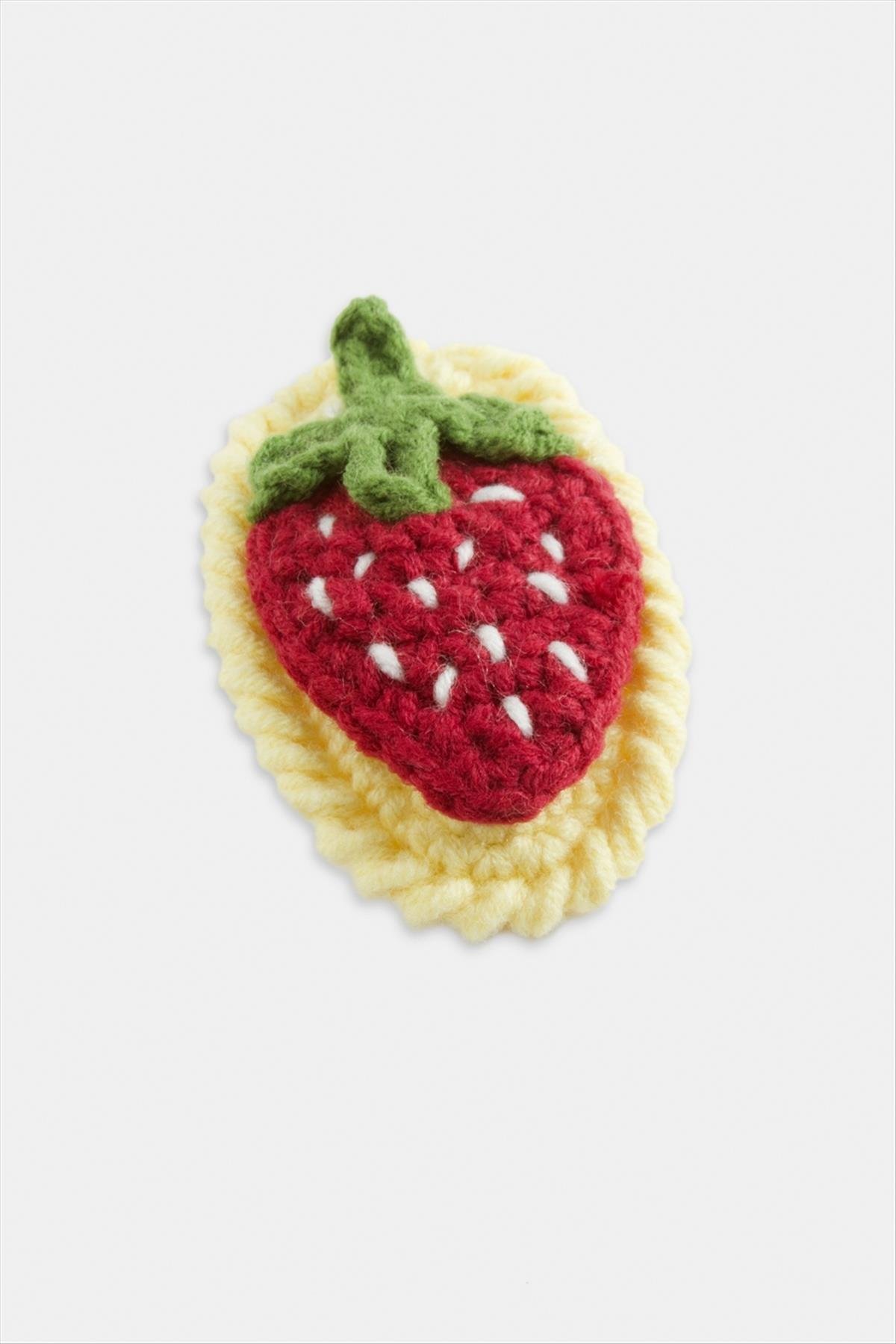 El Yapımı Çilek İşlemeli Örgülü Çıtçıtlı Toka