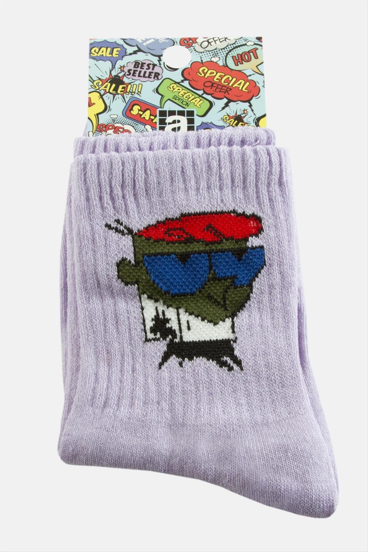 Çorap; Ürün malzemesi polyester ve üzeri desenlidir. Boyu 28 cm ve genişliği 8 cmdir. Ürün numarası 37-41 arasındadır.