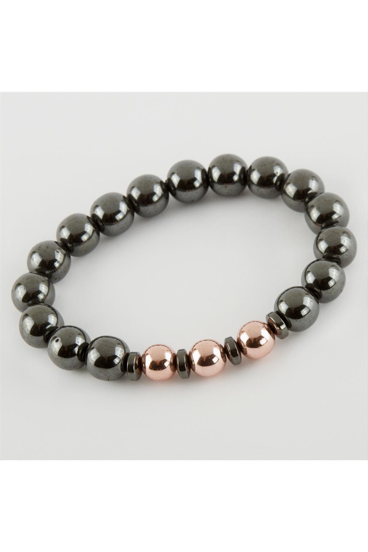 Doğaltaş Bileklik; Hematit doğal taşından imal edilmiştir. Lastik misina kullanılmıştır.