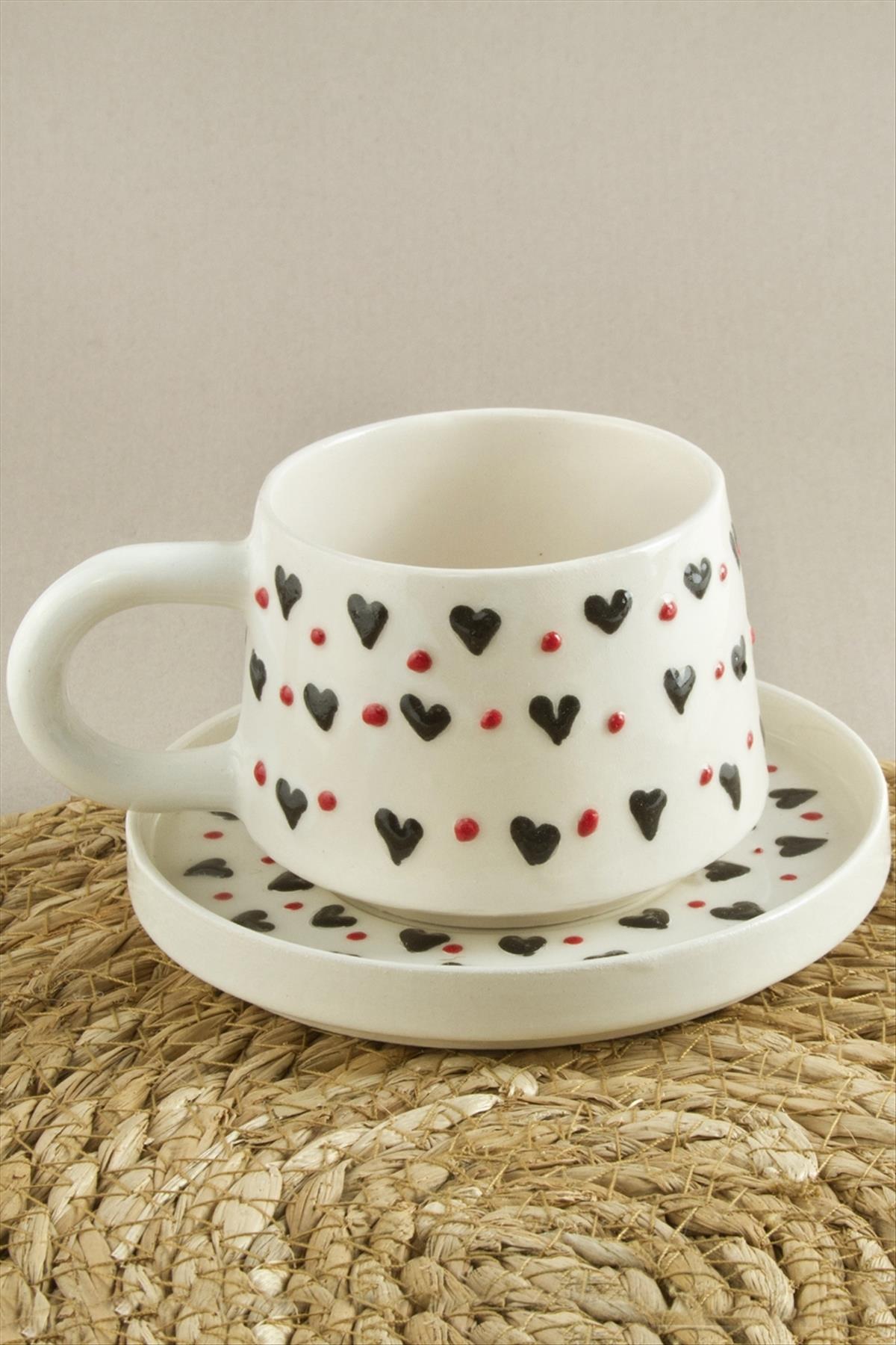 Tabaklı Kupa; Ürün malzemesi seramiktir. Üzerindeki desenler elle çizilip fırınlanmıştır. İçecekleri uzun sür sıcak tutar ve darbelere karşı dayanıklıdır. Ürün kutu içinde tabak ve kupasıyla beraber gönderilecektir. Ürün boyu kupa çapı 8,5 cm ve tabak boyu 12 cmdir.