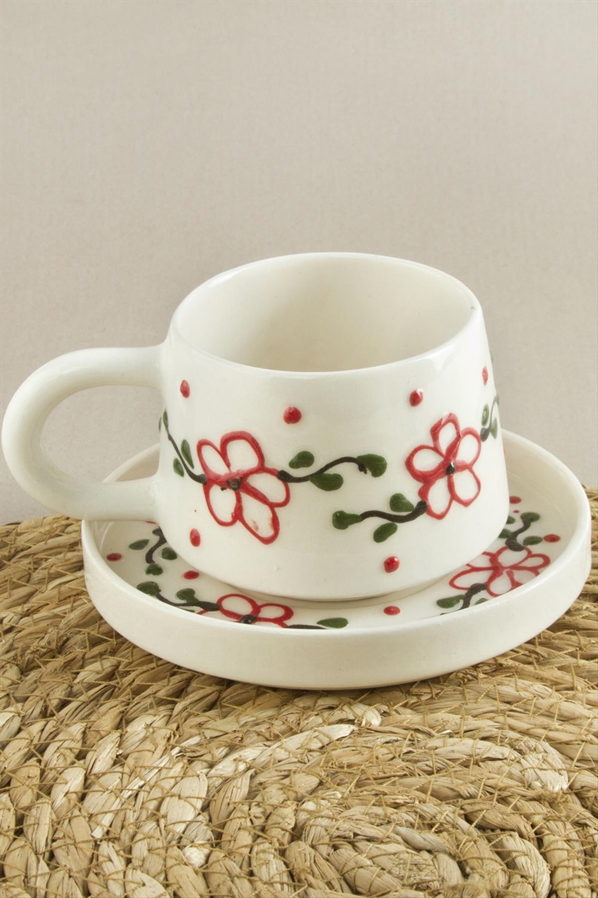 Tabaklı Kupa; Ürün malzemesi seramiktir. Üzerindeki desenler elle çizilip fırınlanmıştır. İçecekleri uzun sür sıcak tutar ve darbelere karşı dayanıklıdır. Ürün kutu içinde tabak ve kupasıyla beraber gönderilecektir. Ürün boyu kupa çapı 8,5 cm ve tabak boyu 12 cmdir.
