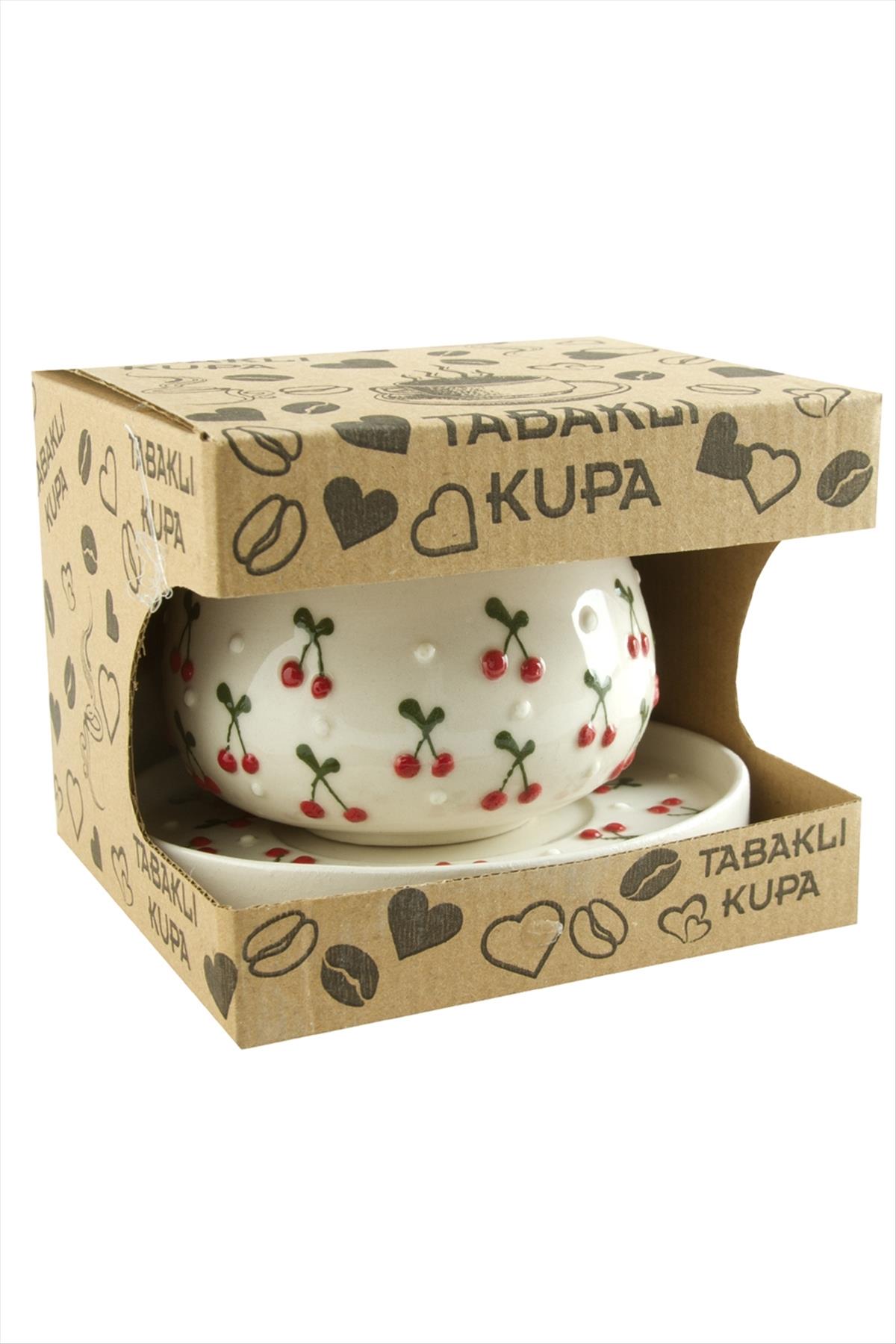 Tabaklı Kupa; Ürün malzemesi seramiktir. Üzerindeki desenler elle çizilip fırınlanmıştır. İçecekleri uzun sür sıcak tutar ve darbelere karşı dayanıklıdır. Ürün kutu içinde tabak ve kupasıyla beraber gönderilecektir. Ürün boyu kupa çapı 8,5 cm ve tabak boyu 12 cmdir.