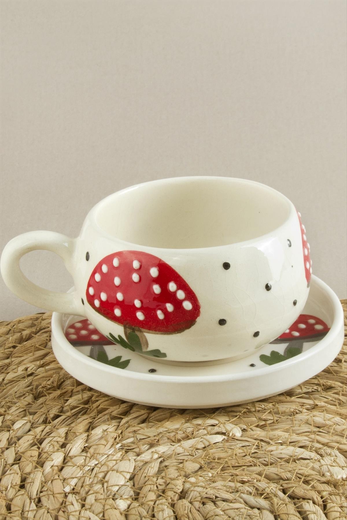 Tabaklı Kupa; Ürün malzemesi seramiktir. Üzerindeki desenler elle çizilip fırınlanmıştır. İçecekleri uzun sür sıcak tutar ve darbelere karşı dayanıklıdır. Ürün kutu içinde tabak ve kupasıyla beraber gönderilecektir. Ürün boyu kupa çapı 8,5 cm ve tabak boyu 12 cmdir.