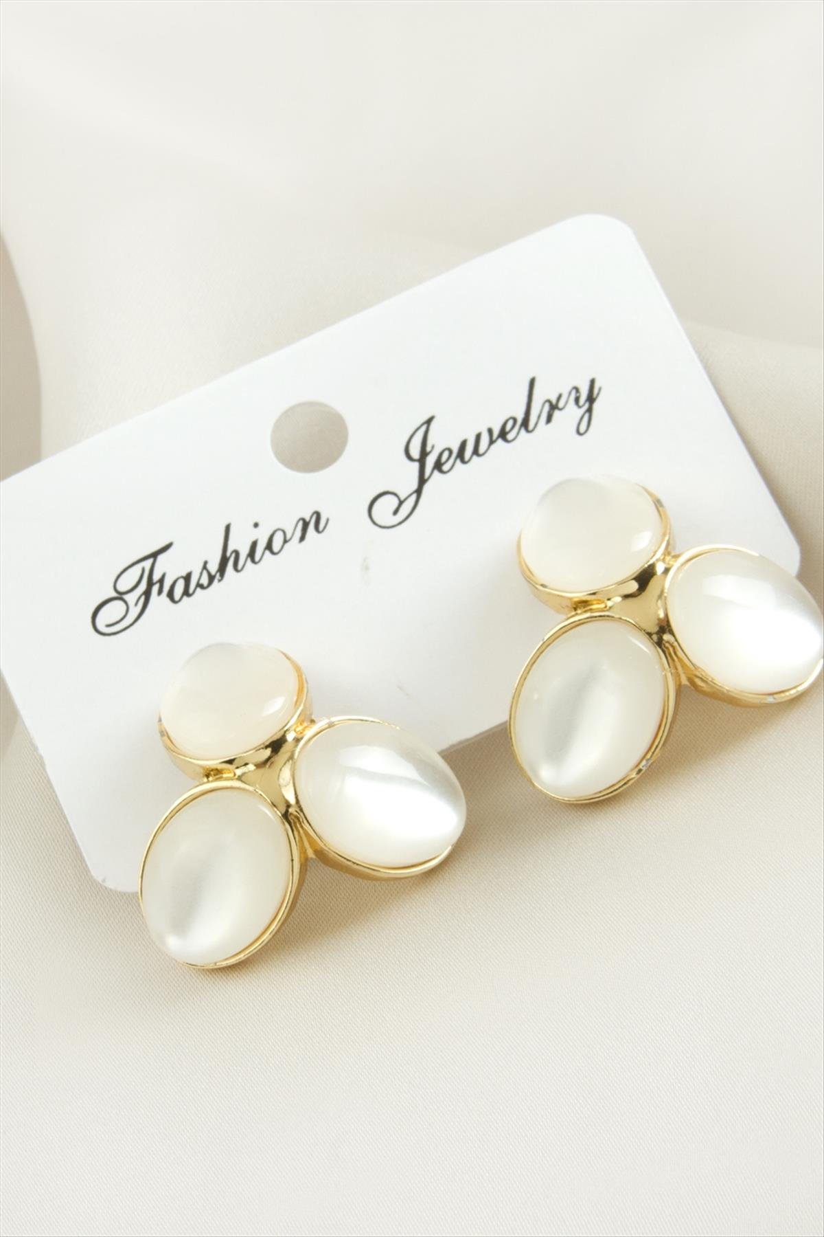 Küpe; Ürün malzemesi metal ve sedef taşlıdır. Ürün boyu 2,5 cmdir. 1 sınıf kaliteli malzemeden üretilmiştir. Kartlıdır.