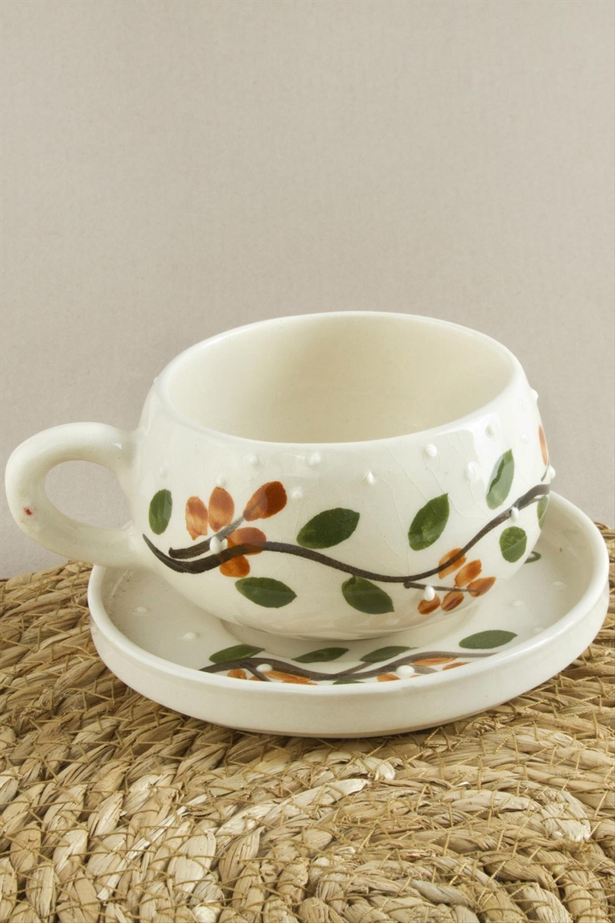 Tabaklı Kupa; Ürün malzemesi seramiktir. Üzerindeki desenler elle çizilip fırınlanmıştır. İçecekleri uzun sür sıcak tutar ve darbelere karşı dayanıklıdır. Ürün kutu içinde tabak ve kupasıyla beraber gönderilecektir. Ürün boyu kupa çapı 8,5 cm ve tabak boyu 12 cmdir.