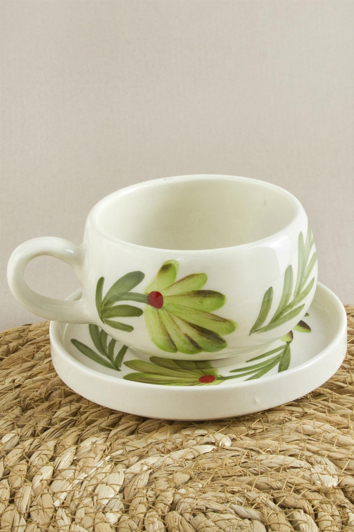 Tabaklı Kupa; Ürün malzemesi seramiktir. Üzerindeki desenler elle çizilip fırınlanmıştır. İçecekleri uzun sür sıcak tutar ve darbelere karşı dayanıklıdır. Ürün kutu içinde tabak ve kupasıyla beraber gönderilecektir. Ürün boyu kupa çapı 8,5 cm ve tabak boyu 12 cmdir.