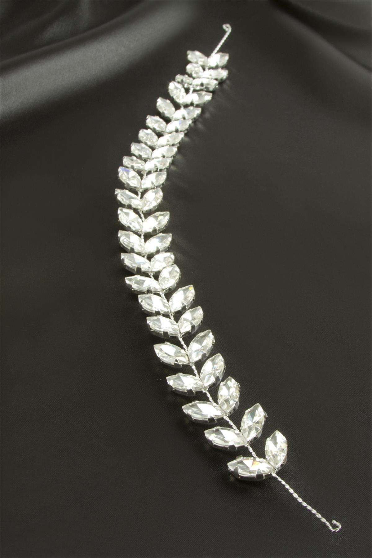 Saç Aksesuarı; Ürün malzemesi taş ve metaldir. Boyu 30 cmdir. Ürün üzerindeki taşlar mıhlanarak üretilmiştir. Ürün esneme özelliği vardır.