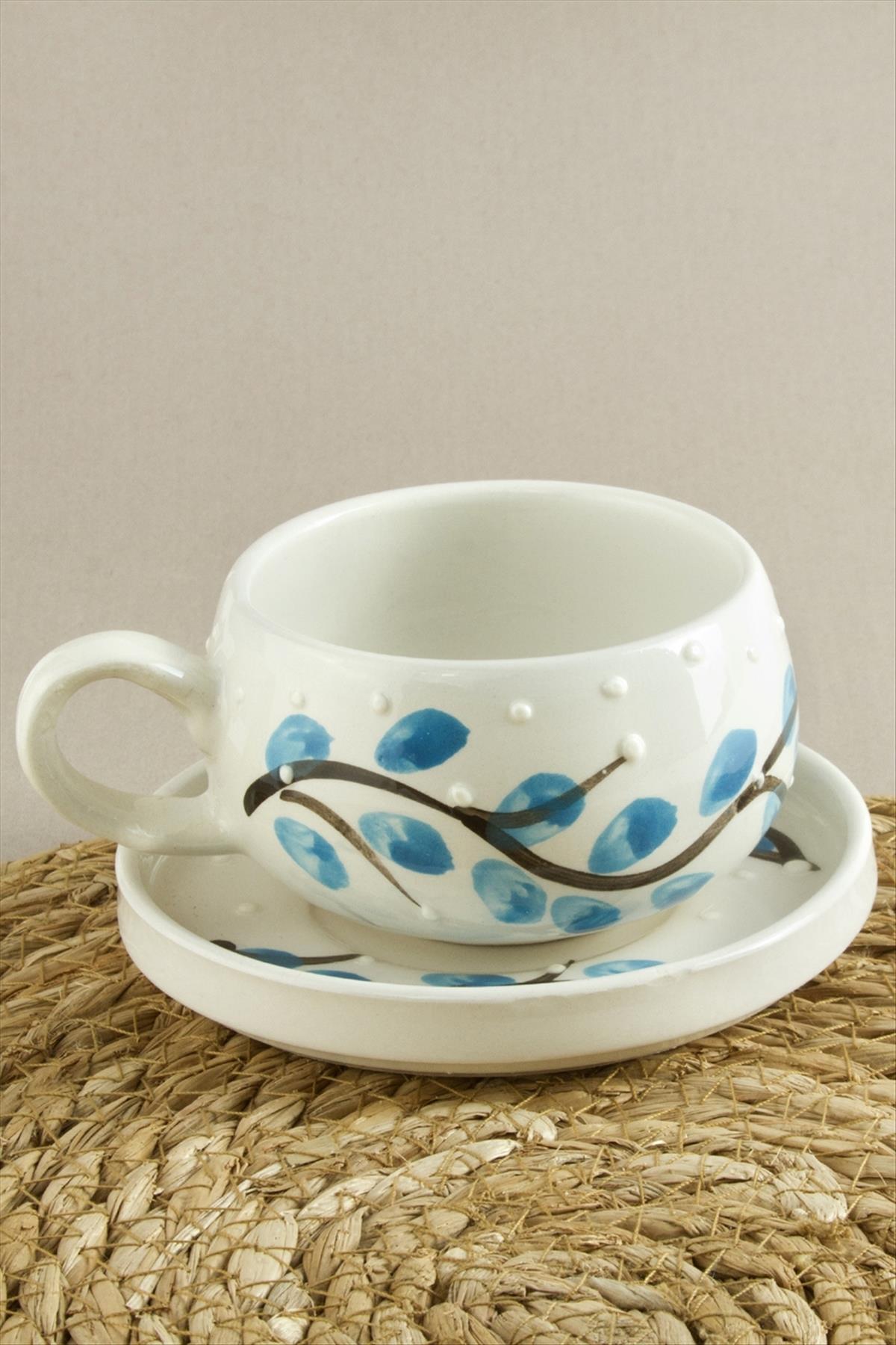 Yapraklı Salkım Desenli Seramik Tabaklı Kupa