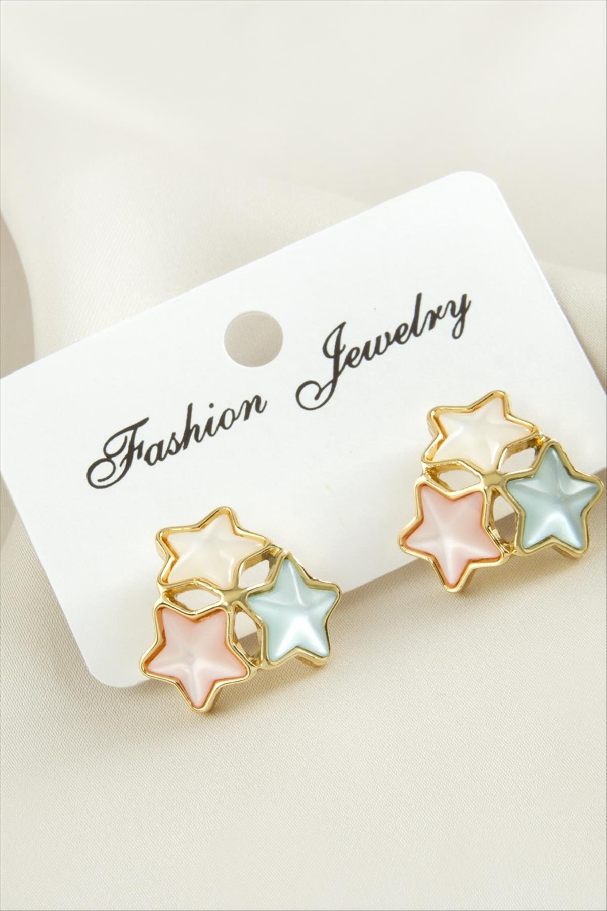 Yıldız Damla Sedef Taşlı Metal Küpe