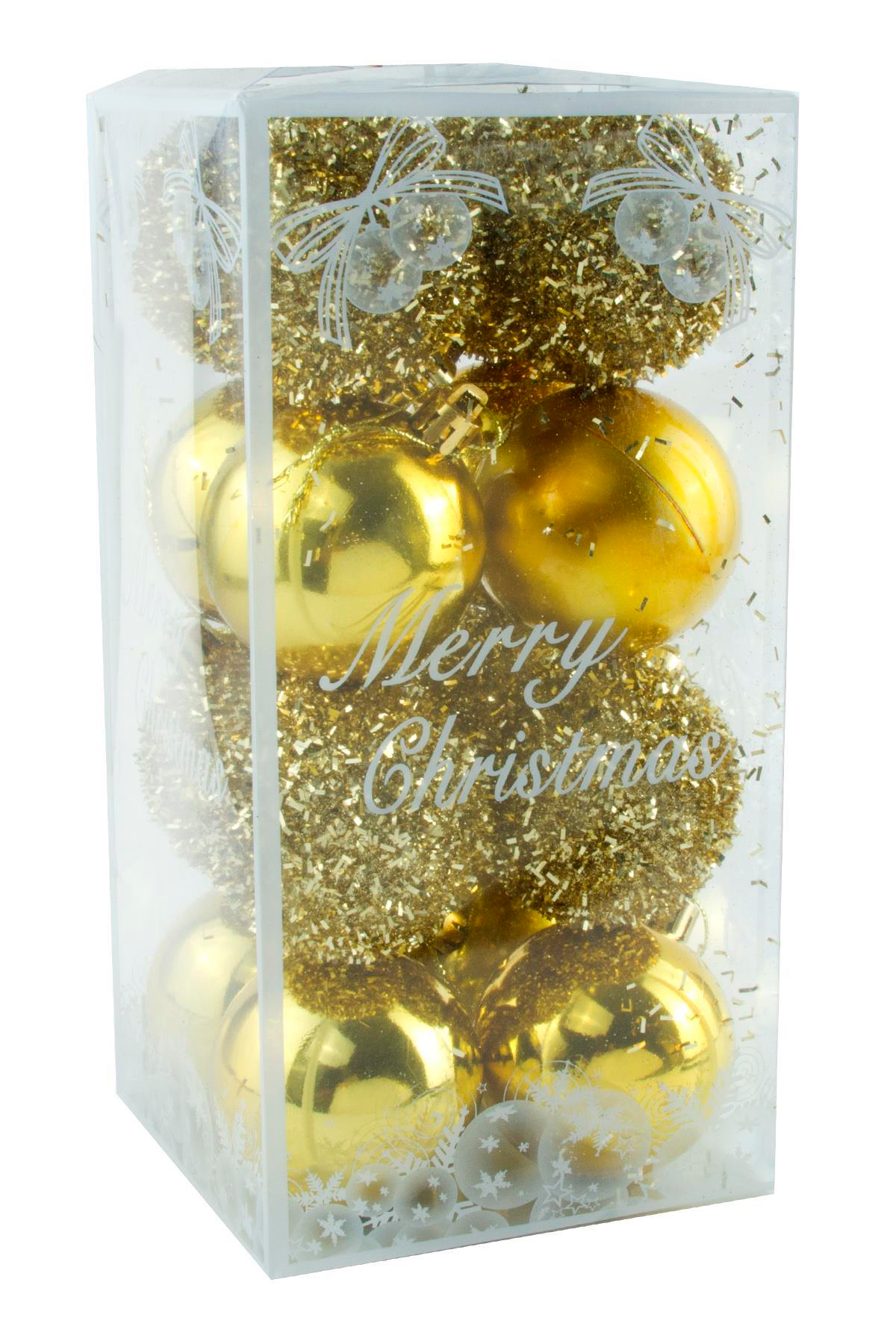 16 Adet Lüks Sarı Renkli Cici Top Yılbaşı Ağaç Süsü