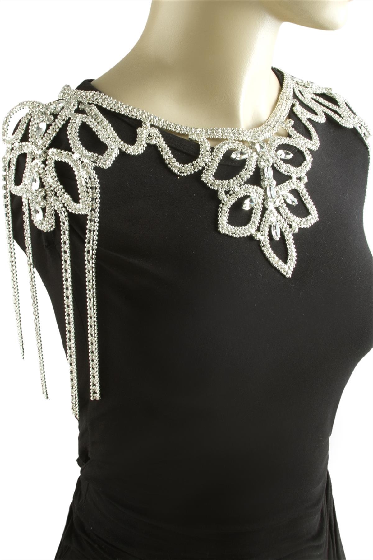Omuz Kolyesi; Ürün malzemesi metal ve savoroski taştan üretilmiştir Takılarınızın parlaklığını koruması için su ve parfüm temasından kaçının.Her bedene ayarlanır Malzeme Zamak metal Kurşun ve nikel içermez.