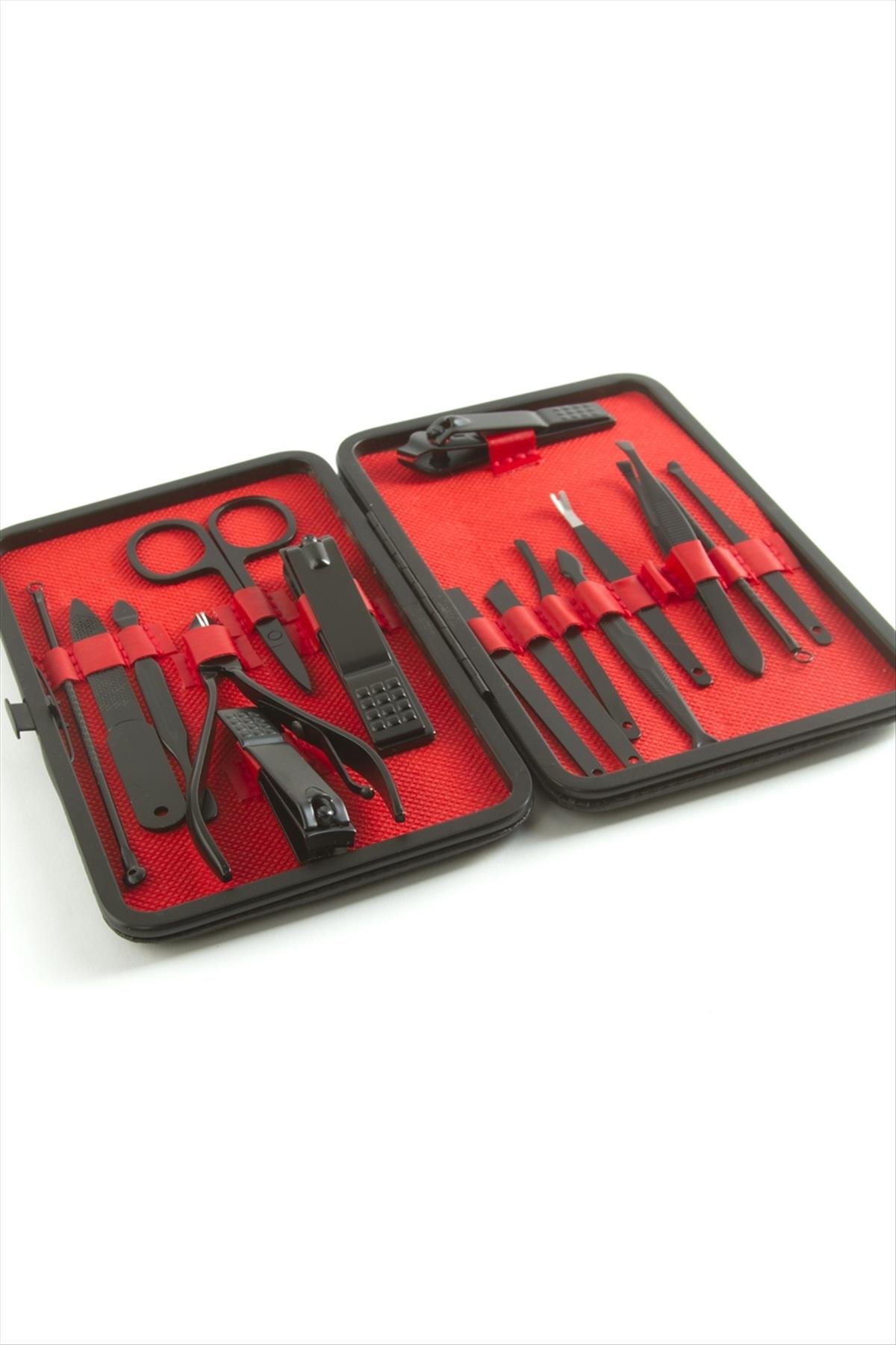 Manikür Set; Ürün içersinde törpü, cımbız, makas, tırnak makası ve et sıyırıcı bulunmaktadır. 17 parça ürün bulunmaktadır. Ürün çantasıyla beraber gönderilecektir. Ürü çanta boyu 9*15 cmdir.