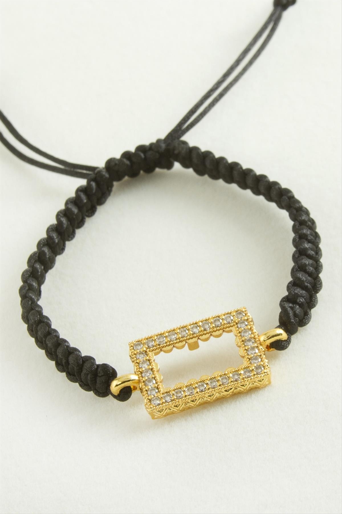 Dikdörtgen Gram Altın Koyulabilir Makrome Örgülü Bileklik