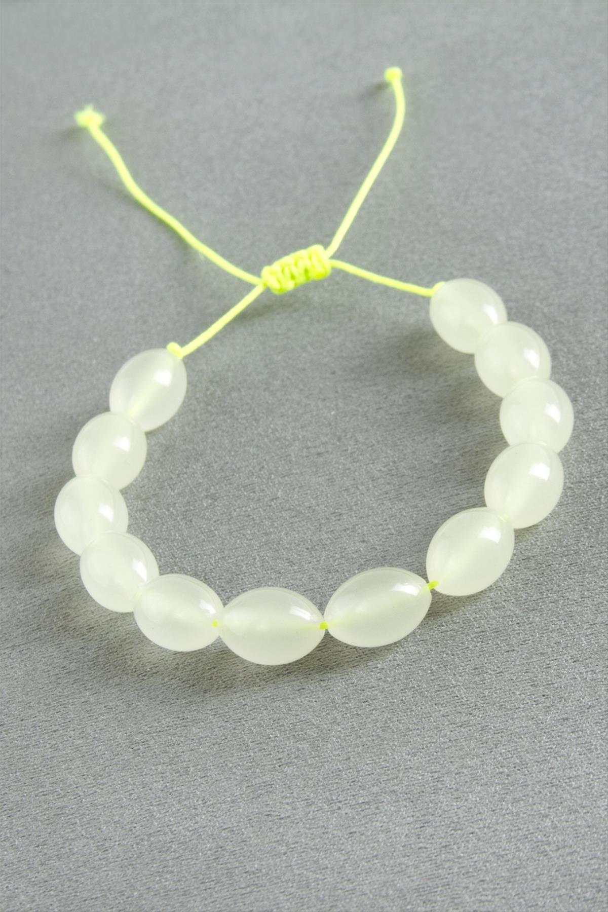 Bileklik; Ürün malzemesi boncuk ve makrome iptir. Ürün arkası asansörlüdür. Bileğe göre ayarlanabilir. Aparat boyu 1 cmdir. Kartlıdır.