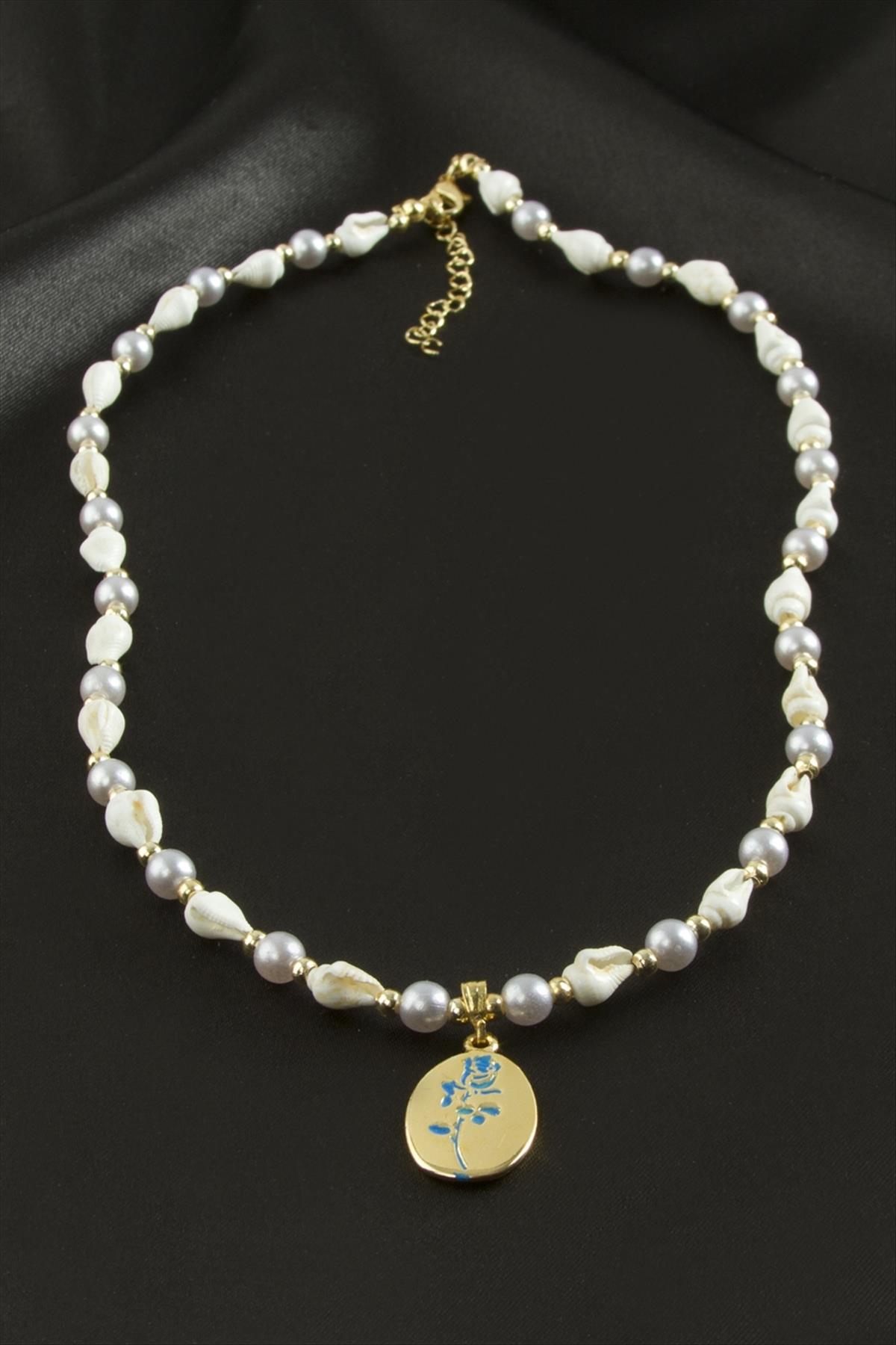 Gül Deniz Kabuğu İnci Mineli Kolye
