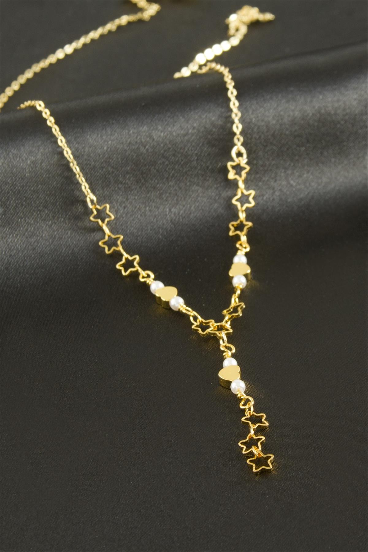 Kolye; Ürün malzemesi inci ve metaldir. 1 sınıf kaliteli malzemeden üretilmiştir. Ürün boyu 54 cmdir. Kartlıdır.
