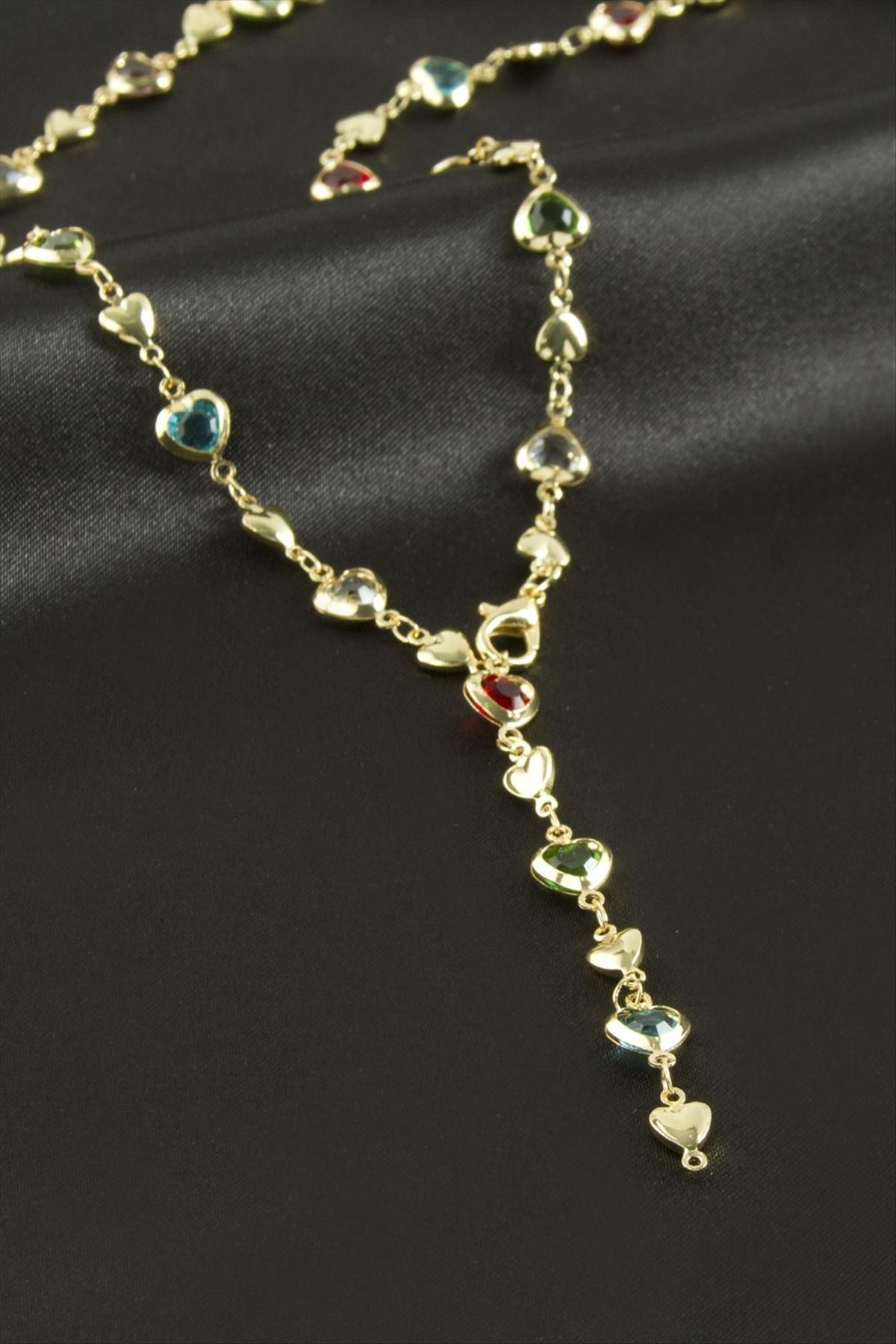 Kolye; Ürün malzemesi zirkon taş ve metaldir. 1 sınıf kaliteli malzemeden üretilmiştir. Ürün boyu 54 cmdir. Kartlıdır.