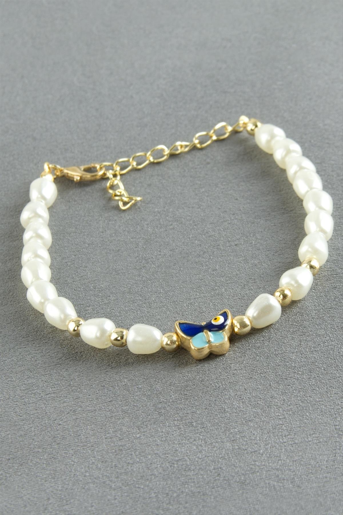 Bileklik; Ürün malzemesi metal ve incidir. Ürün boyu 19 cmdir. Fiyat 1 adet için geçerlidir. Kartlıdır.