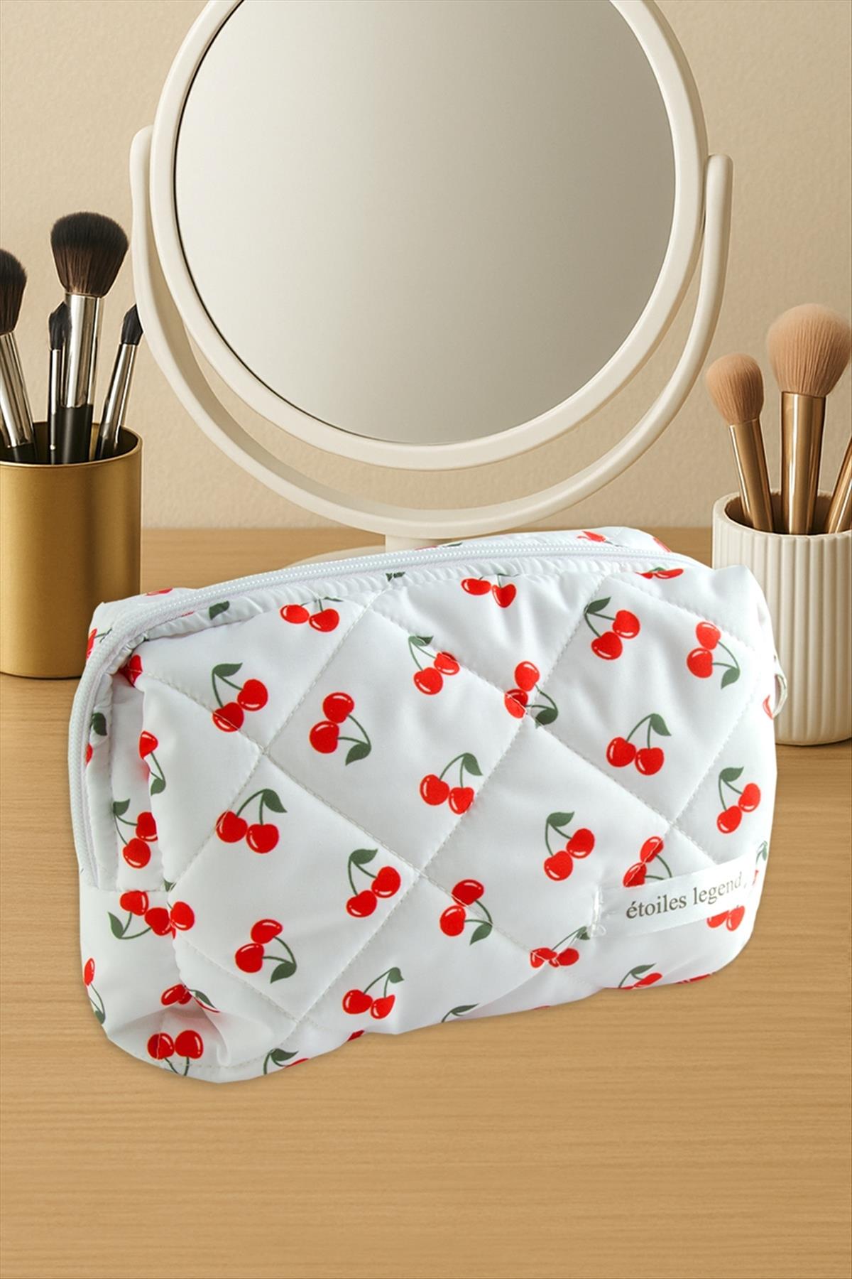 Kiraz Desenli Makyaj Çantası