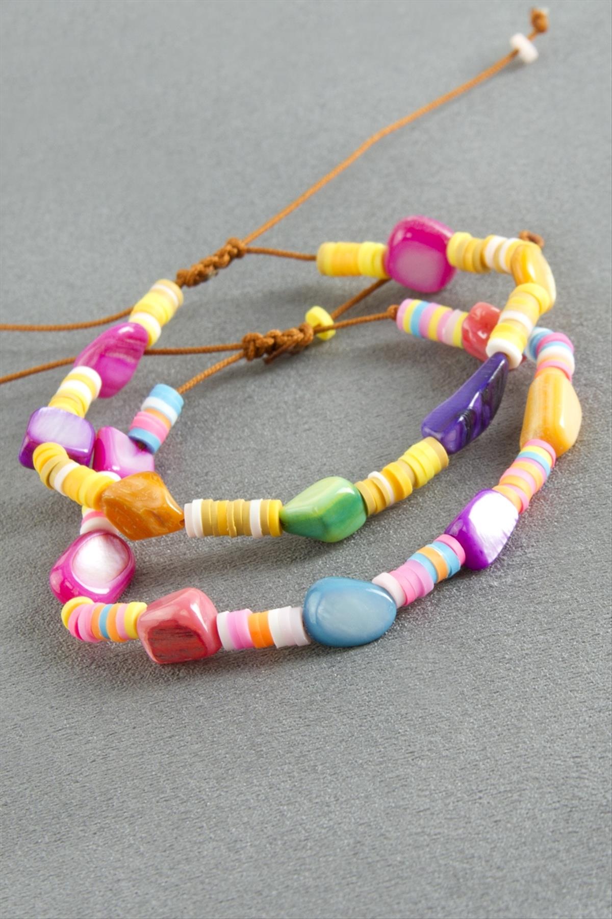 Bileklik; Ürün malzemesi fimo boncuk ve makrome iptir. Ürün arkası asansörlüdür. Bileğe göre ayarlanabilir. Ürün renkleri asortilidir. Siparişlerinizde karışık olarak gönderilecektir.