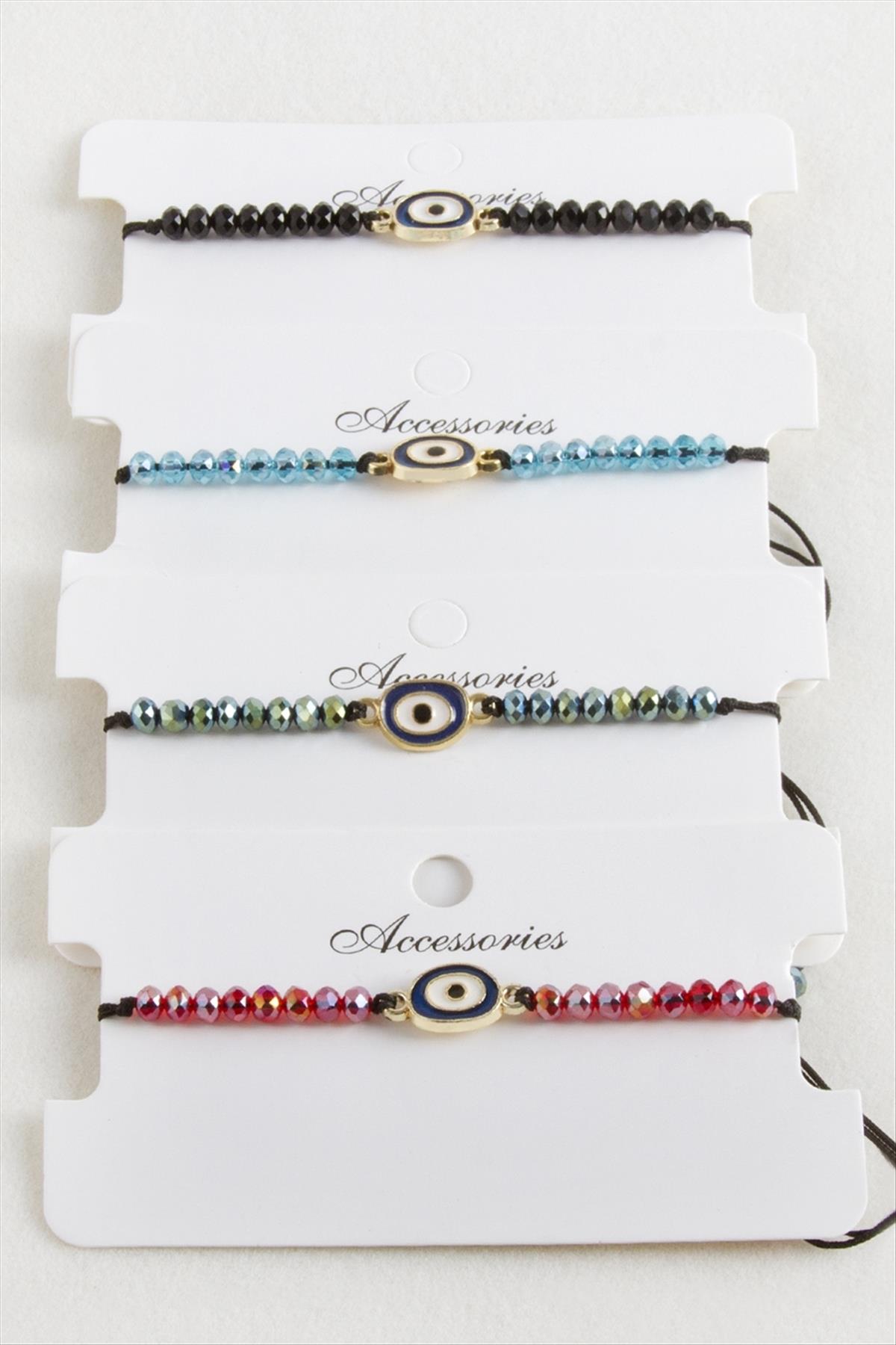 Bileklik; Ürün malzemesi kristal ve makrome iptir. Ürün arkası asansörlüdür. Bileğe göre ayarlanabilir. Aparat boyu 1 cmdir.