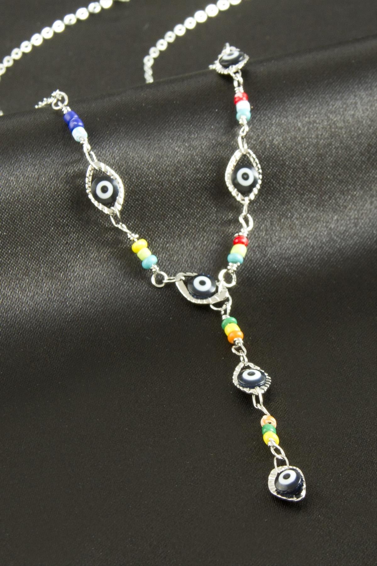 Kolye; Ürün malzemesi mine boyama ve metaldir. 1 sınıf kaliteli malzemeden üretilmiştir. Ürün boyu 54 cmdir. Kartlıdır.