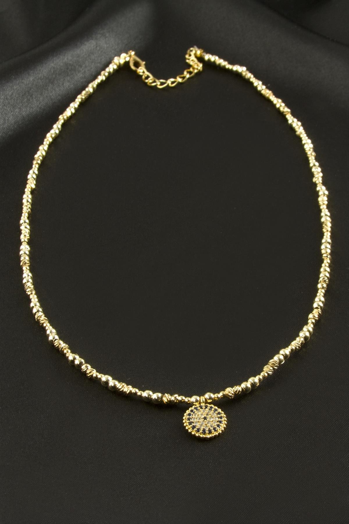 Nazar Zirkon Taşlı Metal Boncuklu Kolye