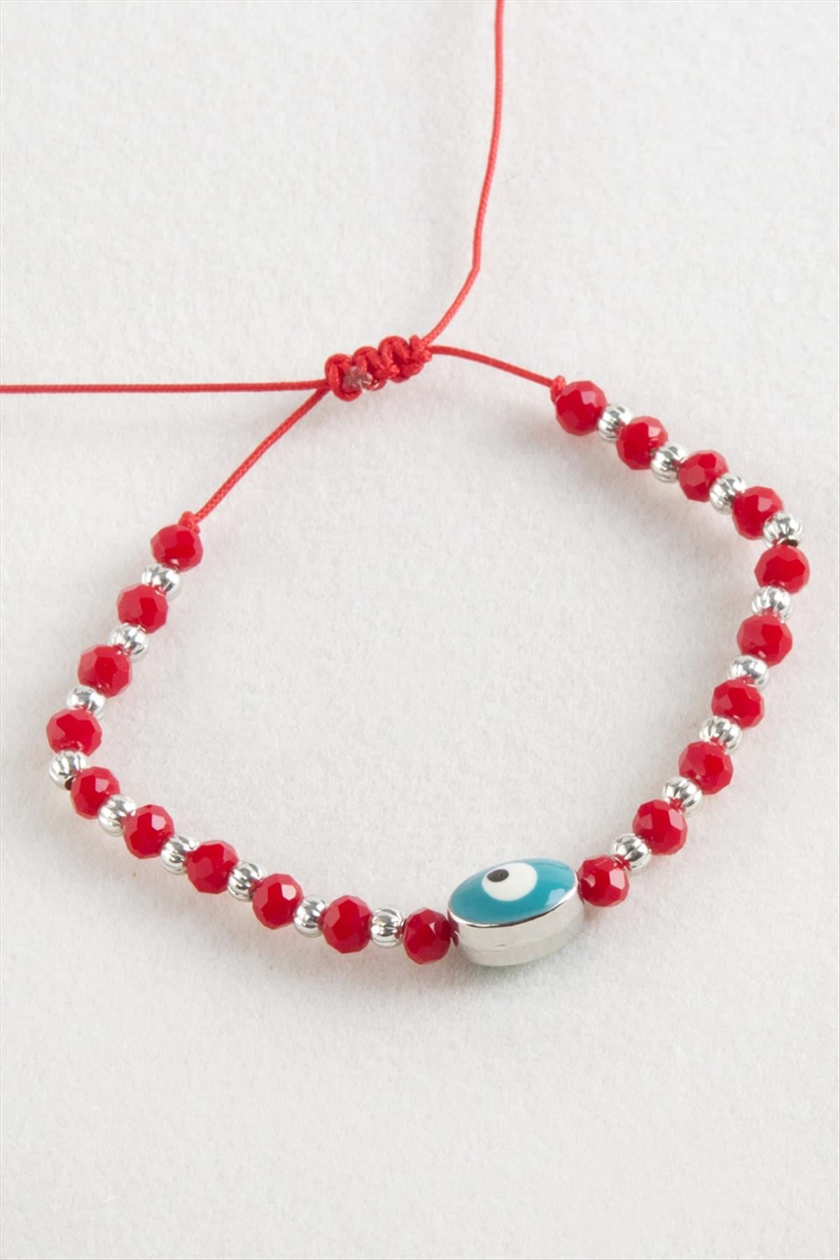 Bileklik; Ürün malzemesi kristal ve makrome iptir. Ürün arkası asansörlüdür. Bileğe göre ayarlanabilir. Nazar boyu 1 cmdir.