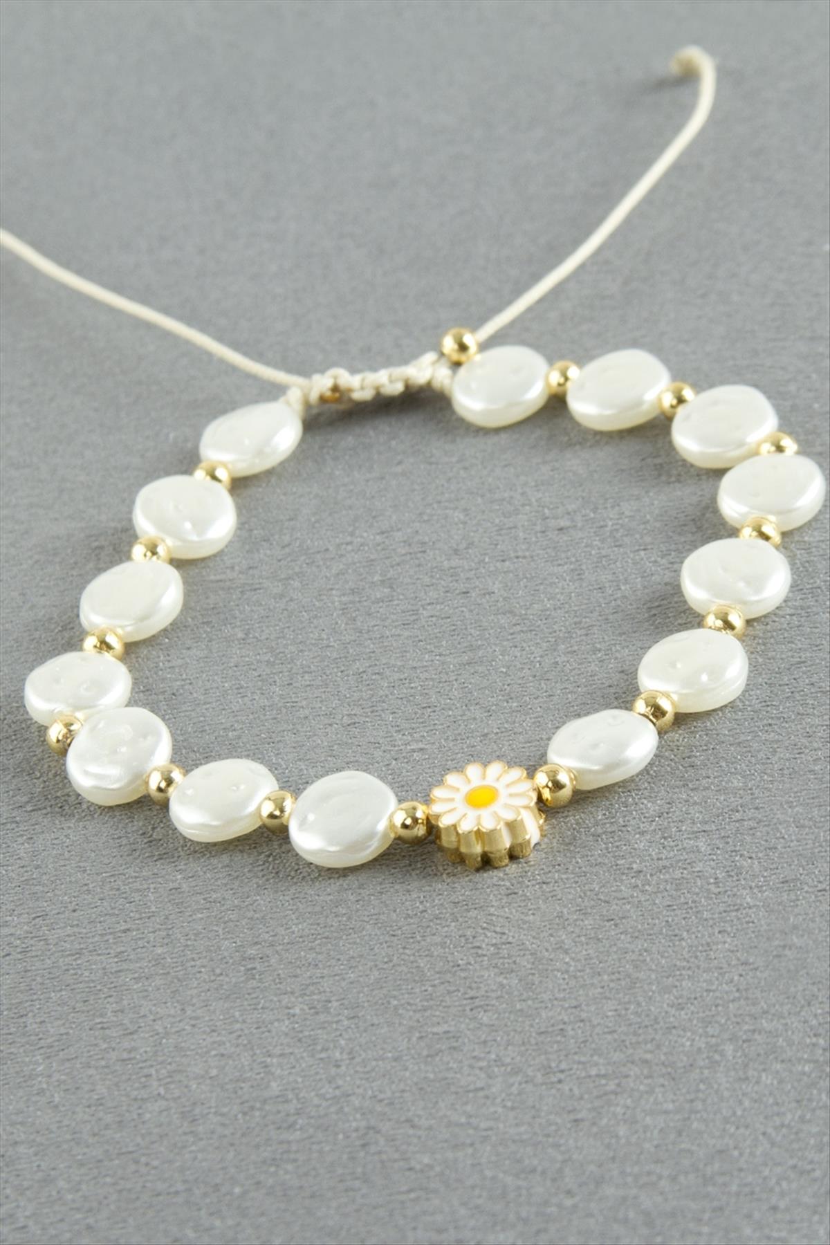 Papatya Yuvarlak İnci Bileklik