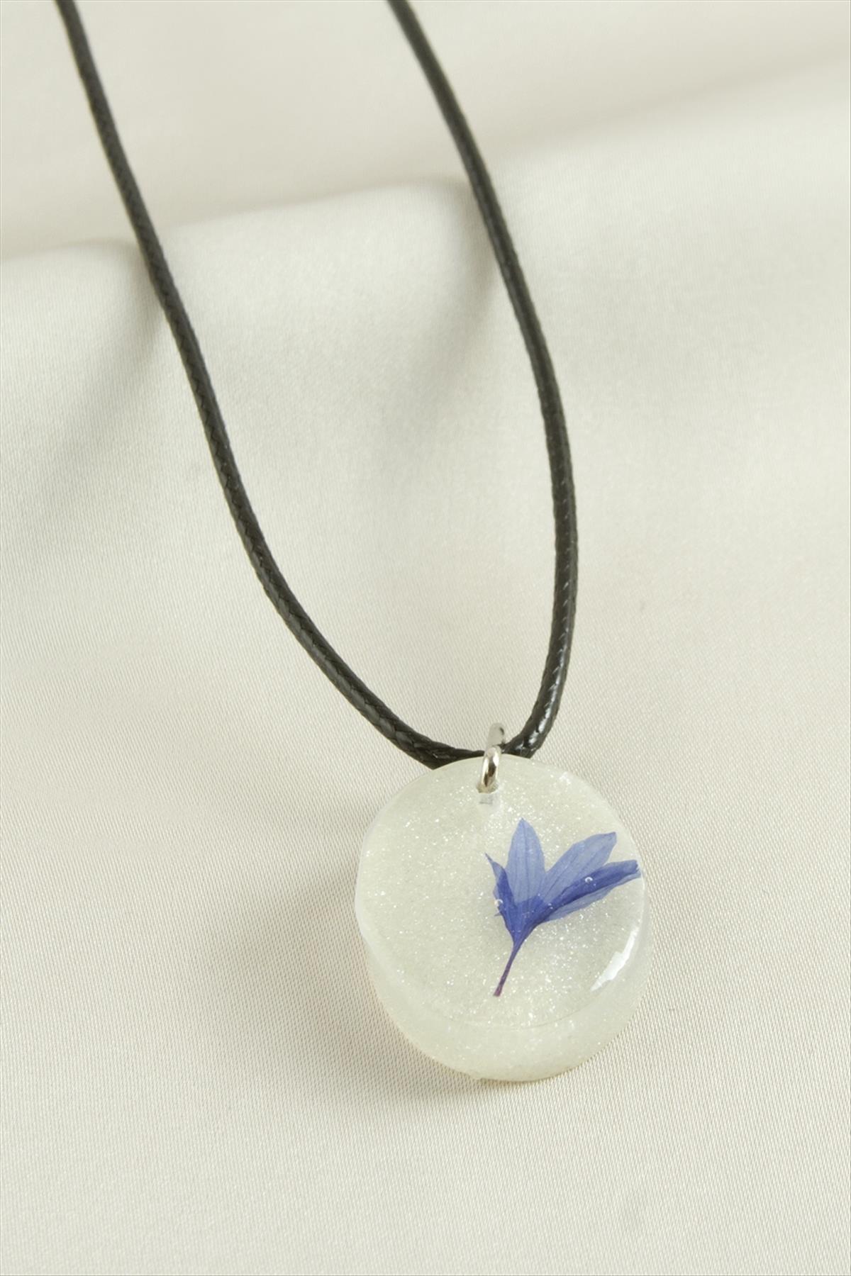 Epoksi Kolye; Ürün malzemesi deri ve epoksi malzemeden üretilmiştir. Ürün 1 sınıf kristal epoksi malzeme kullanılmıştır. Kolye deri ip uzunluğu 50 cm ve ucundaki epoksi 2 cmdir.