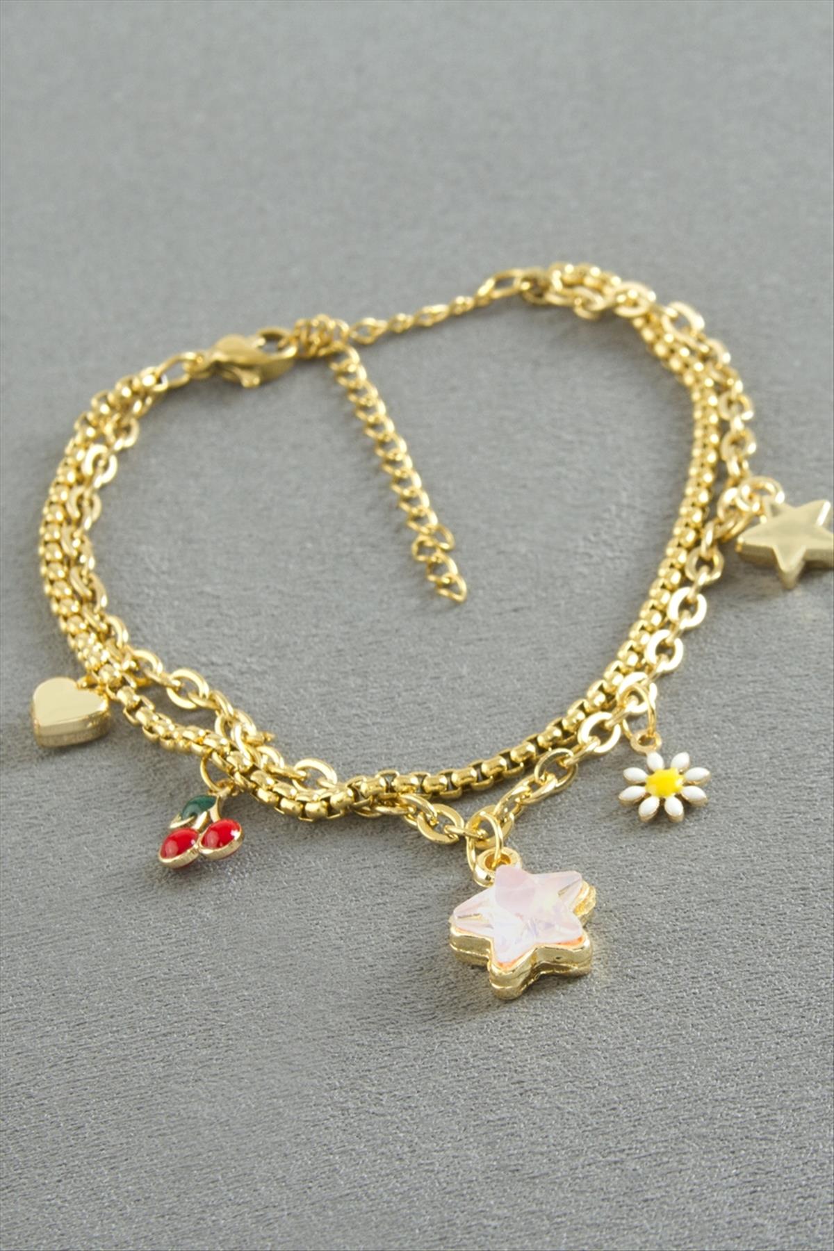 Bileklik; Ürün malzemesi mine boyama ve çeliktir. Bileklik boyu 19 cmdir. Kartlıdır. 1 sınıf kaliteli malzemeden üretilmiştir.