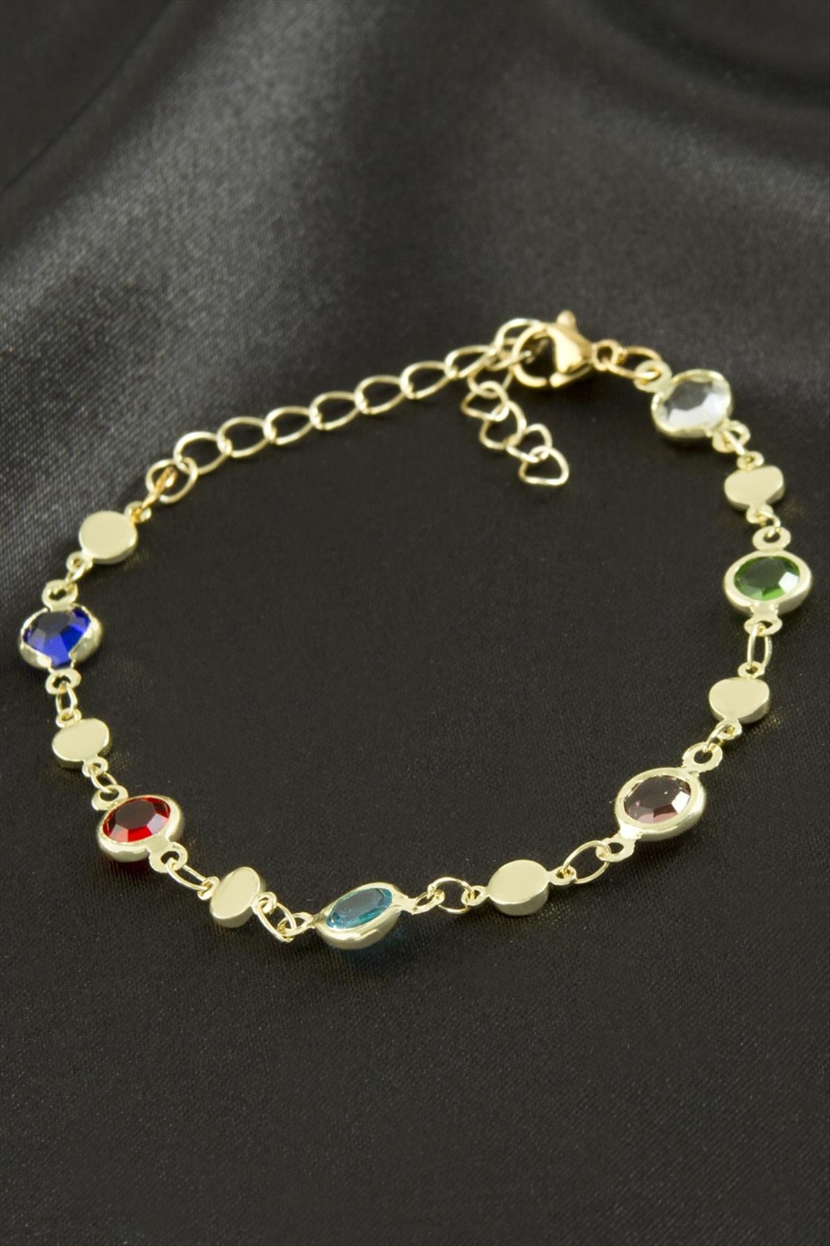 Yuvarlak Kristal Taşlı Çelik Bileklik