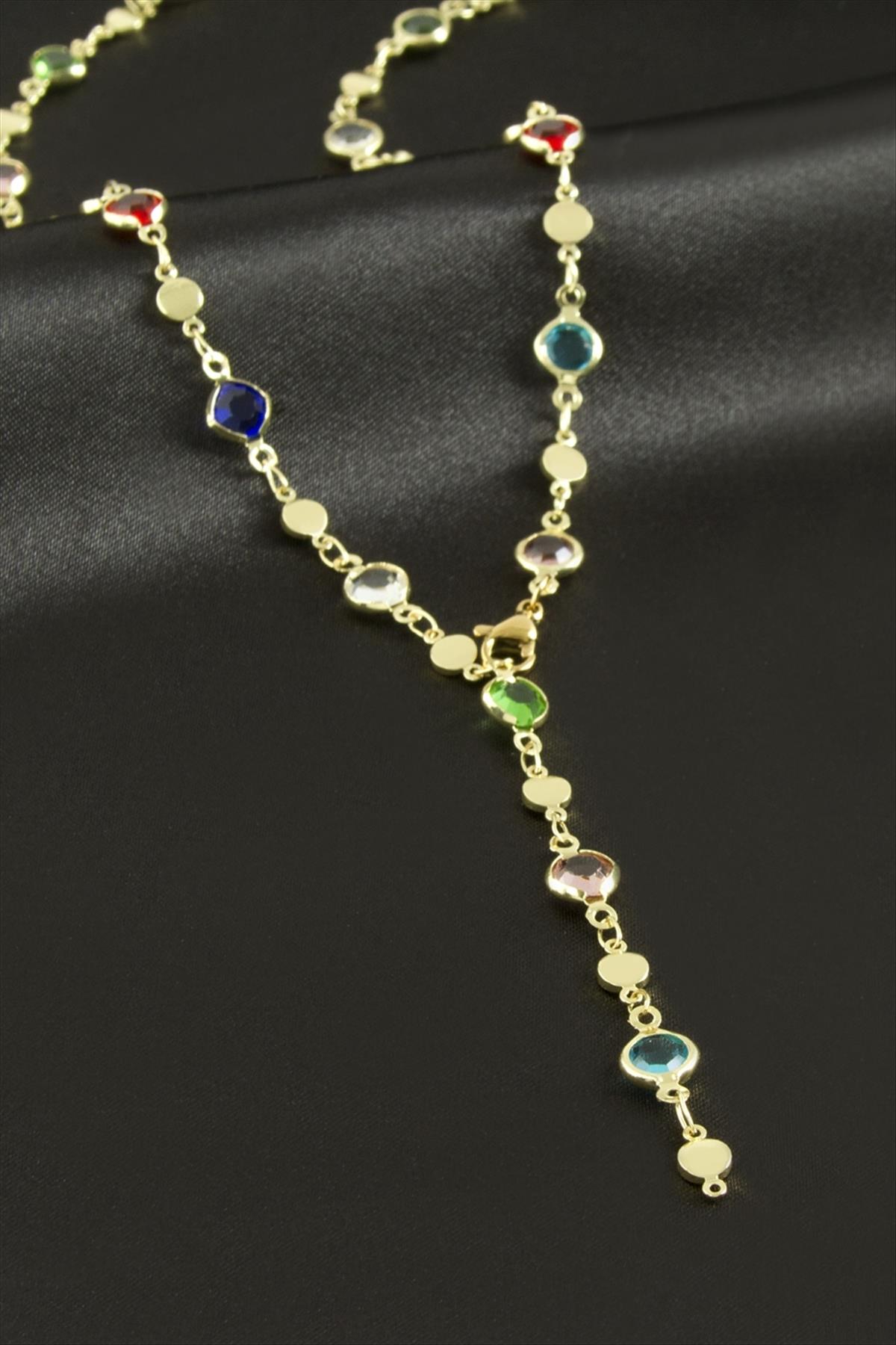 Yuvarlak Zirkon Taşlı Çelik Y Kolye