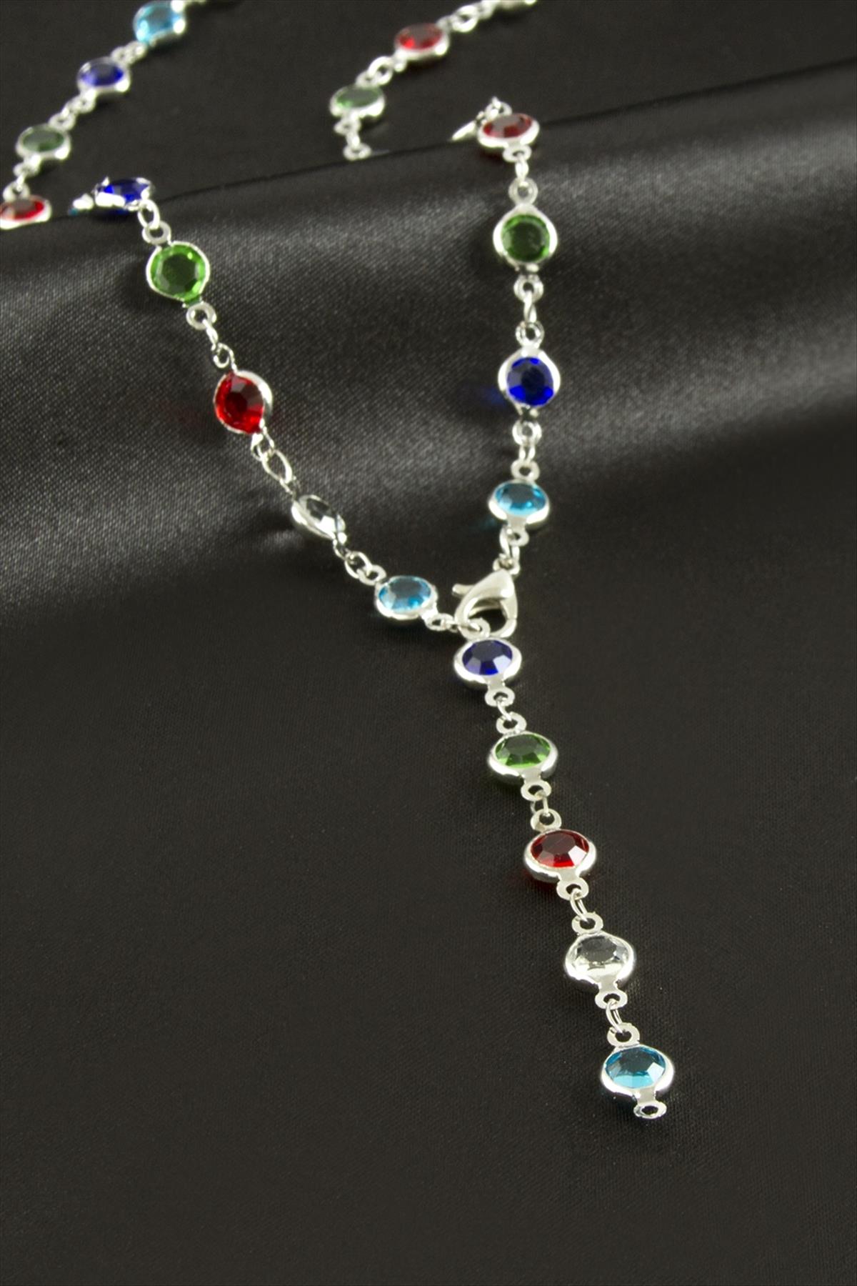 Kolye; Ürün malzemesi zirkon taş ve çeliktir. 1 sınıf kaliteli malzemeden üretilmiştir. Ürün boyu 54 cmdir. Kartlıdır.